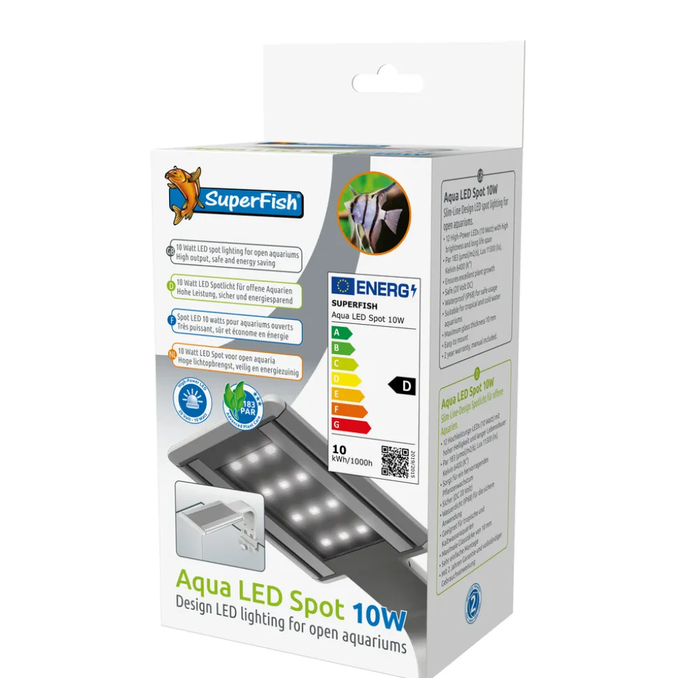 Offrant une grande luminosité, le spot LED Superfish est l’accessoire idéal pour éclairer votre aquarium. 100 % étanche, ce luminaire est conçu pour être utilisé dans un milieu humide et aquatique. La conception de ce spot LED permet de l’utiliser avec les aquariums ouverts dépourvus de couvercle. Grâce à la lumière intense qui sera projetée, vos plantes profiteront d’une bonne croissance, tandis que les poissons bénéficieront d’un éclairage adapté à leurs besoins. Pourvu de LED d’une puissance totale de 10 W, ce spot durera plusieurs années.