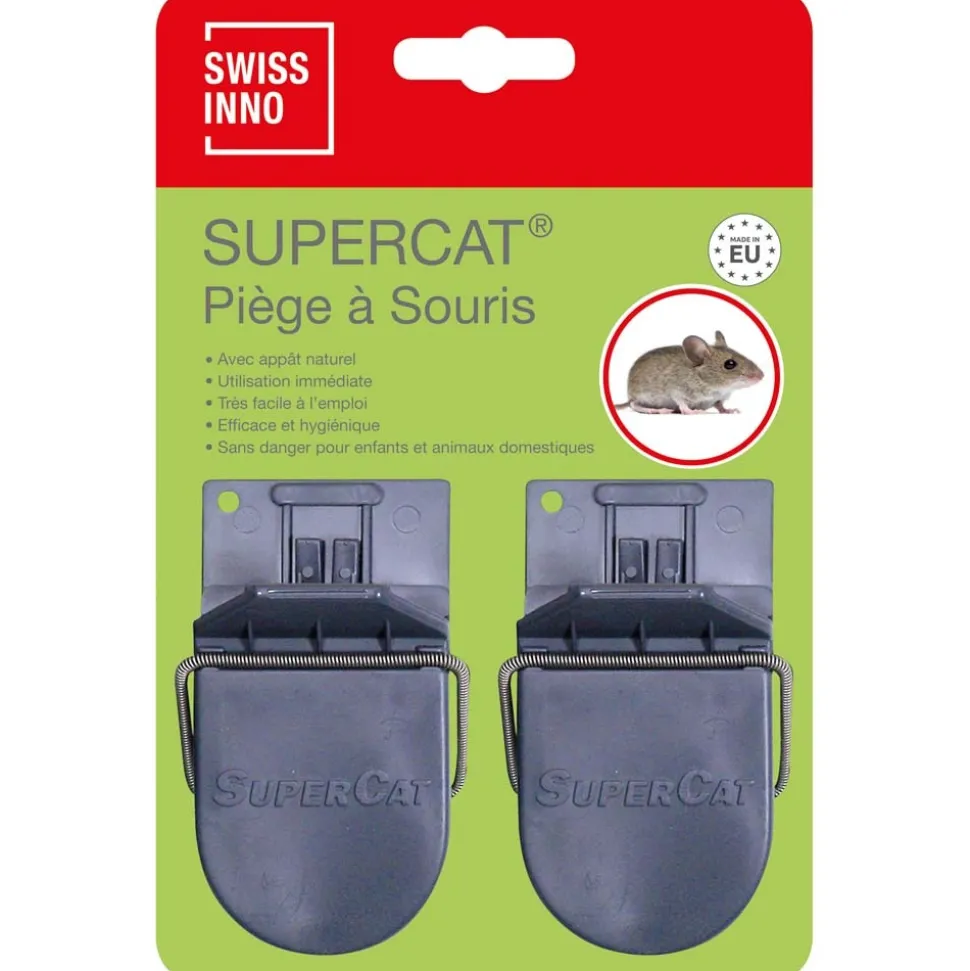 Appât prêt à l’emploi : L’appât est un produit non toxique, doté d’un fort pouvoir d’attraction sur les souris.Taux de prise extraordinairement élevé : Des milliers d’utilisateurs ont constatés un immense nombre de prises en très peu de temps.Conception Suisse : Mécanismes de ressorts très puissants.Hygiénique : Pas de contact direct avec l’animal mort.Sans risques pour les enfants : Les mâchoires à fermeture instantanée sont conçues pour tuer les souris mais ne blessent pas les enfants ou les animaux domestiques.Utilisation en extérieur ou en intérieur.Réutilisable. Conditionnement par 2 Utilisation facile : Poussez le levier vers le bas et retirez le capuchon protecteur de l’appât. SuperCat est prêt à fonctionner ! Placez le piège à l’endroit opportun. Sachez que les souris traversent rarement un espace à découvert, disposez-le de préférence avec l’ouverture dirigée vers le mur. Le corps de la souris peut être retiré rapidement et facilement sans y toucher en appuyant sur le clapet. SuperCat est à nouveau prêt à fonctionner !