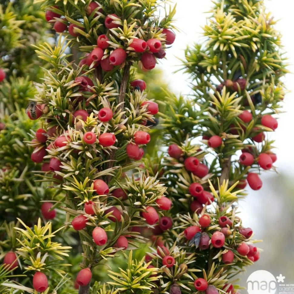 Répétons-le : le feuillage de l’if renferme une substance toxique : la taxine. Les graines le sont aussi, à l’intérieur des arilles, les baies rouges de l’if, qui mûrissent à l’automne. L’arbre attire ainsi les oiseaux qui se nourrissent sans crainte de ses fruits. En effet ils ne digèrent pas les graines de ce conifère.