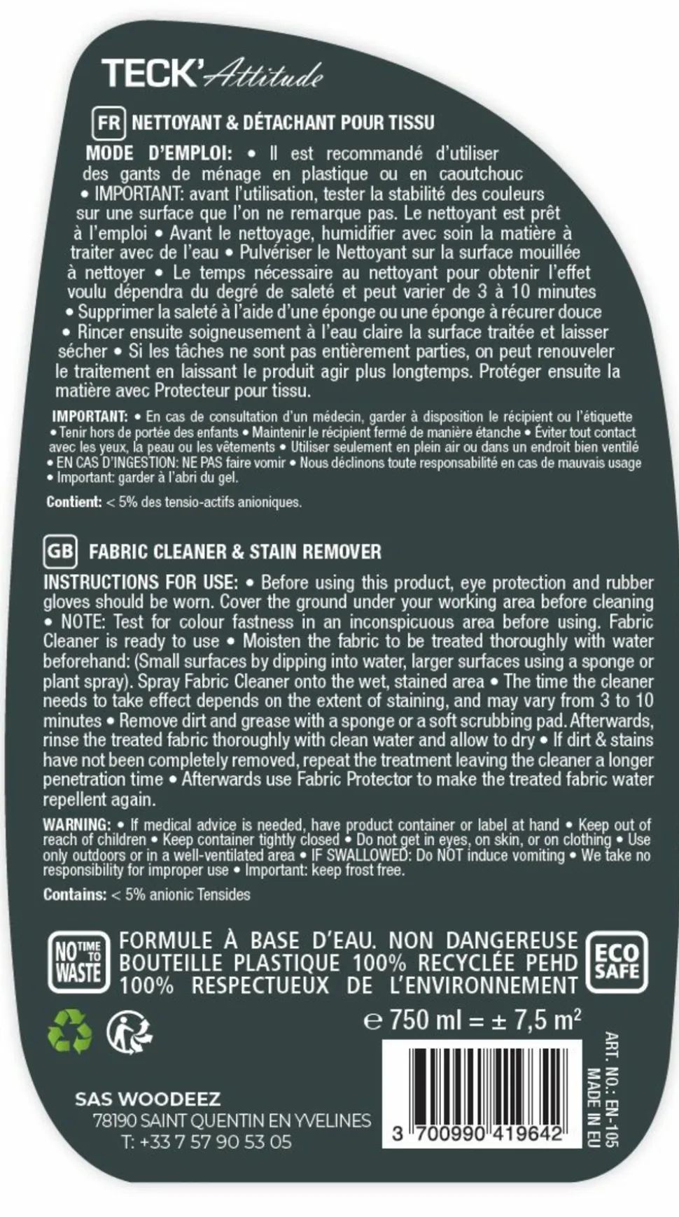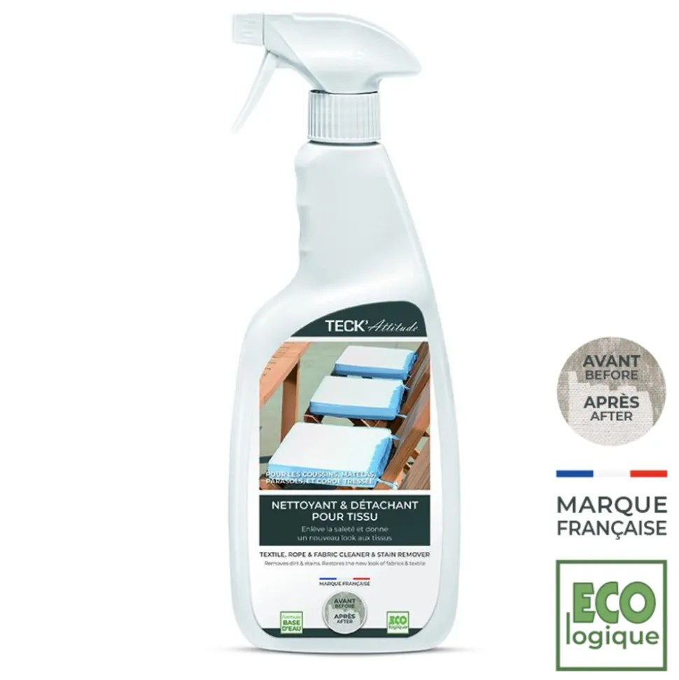Facile à utiliser, le nettoyant pour tissus enlève les taches et ravive les couleurs de vos coussins, toiles de parasols, transats.