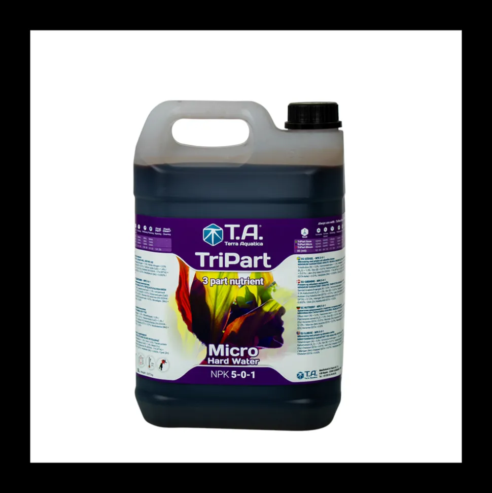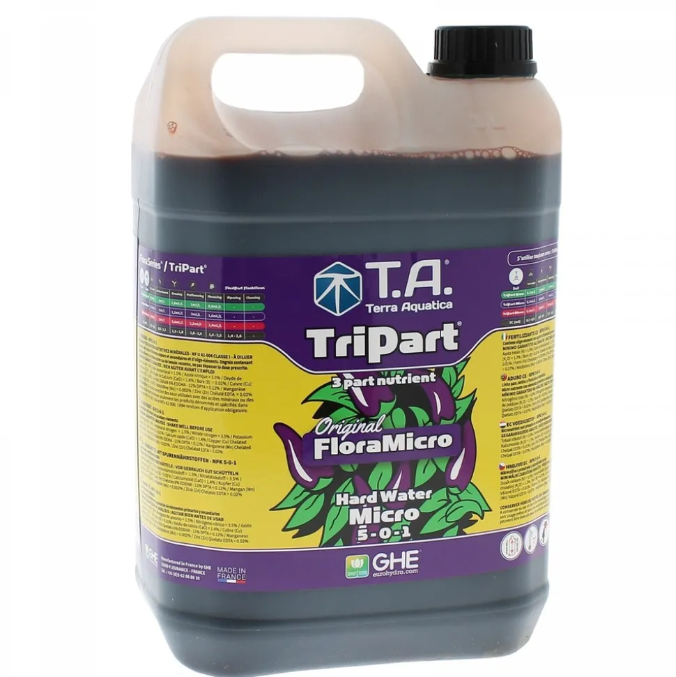 FloraMicro « eau dure » 5 litres change de nom et devient Tripart Micro « eau dure ». Il est l’élément de base du programme de Tripart Terra Aquatica. Ce concept d’engrais en 3 parties utilisable en terre, hydroponie et fibres de coco a été créée en 1976 par le Dr Cal Herrmann spécialiste de la chimie de l’eau à la NASA. Tripart est une formule reconnue mondialement par la communauté scientifique en raison de sa fiabilité, de son adaptabilité et de la stabilité de son pH.