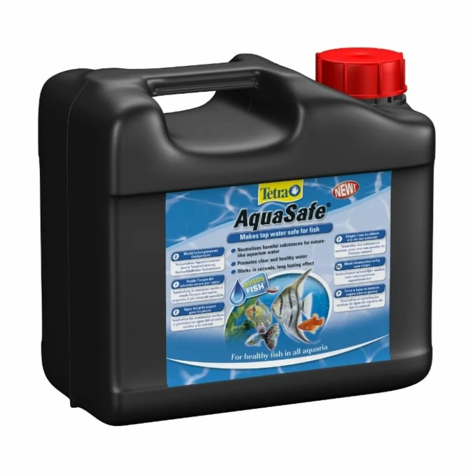 AquaSafe Conditionneur d’Eau 5LAquaSafe est idéal lors d’un changement d’eau partiel ou au démarrage d’un nouvel aquarium car il adapte l’eau du robinet à la vie des poissons en quelques secondesÉlimine instantanément les substances dangereuses, telles que le chlore, les chloramines, le cuivre, le zinc et le plomb, présentes dans l’eau du robinetLe mélange optimisé de vitamines B réduit le stress des poissons lors des changements d’eau et soutient donc durablement leur santéContient un extrait végétal naturel pour protéger les branchies et les muqueuses des poissonsLes vitamines, l’iode et le magnésium favorisent la vitalité, la croissance et le bien-êtreAméliore la clarté de l’eau en favorisant la croissance de bactéries utilesÀ utiliser lors de l’installation d’un nouvel aquarium, d’un changement d’eau ou du transport des poissonsPour tous les aquariums d’eau douce et d’eau de mer (éteindre l’écumeur de protéines)Adapte l’eau du robinet à la vie des poissons
