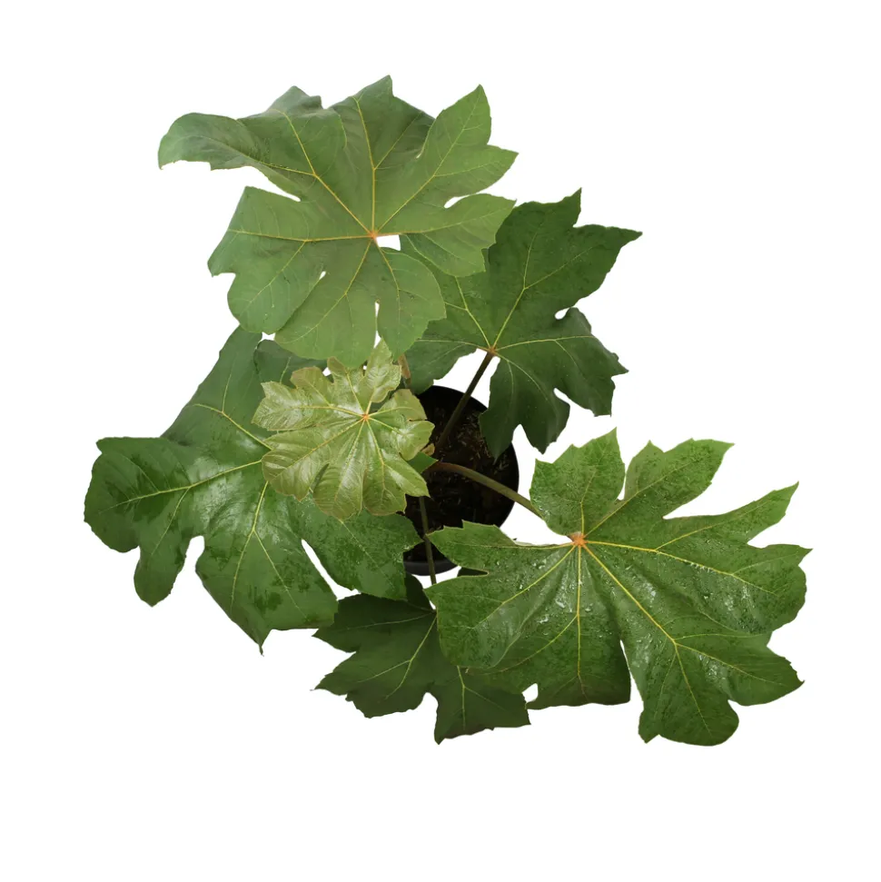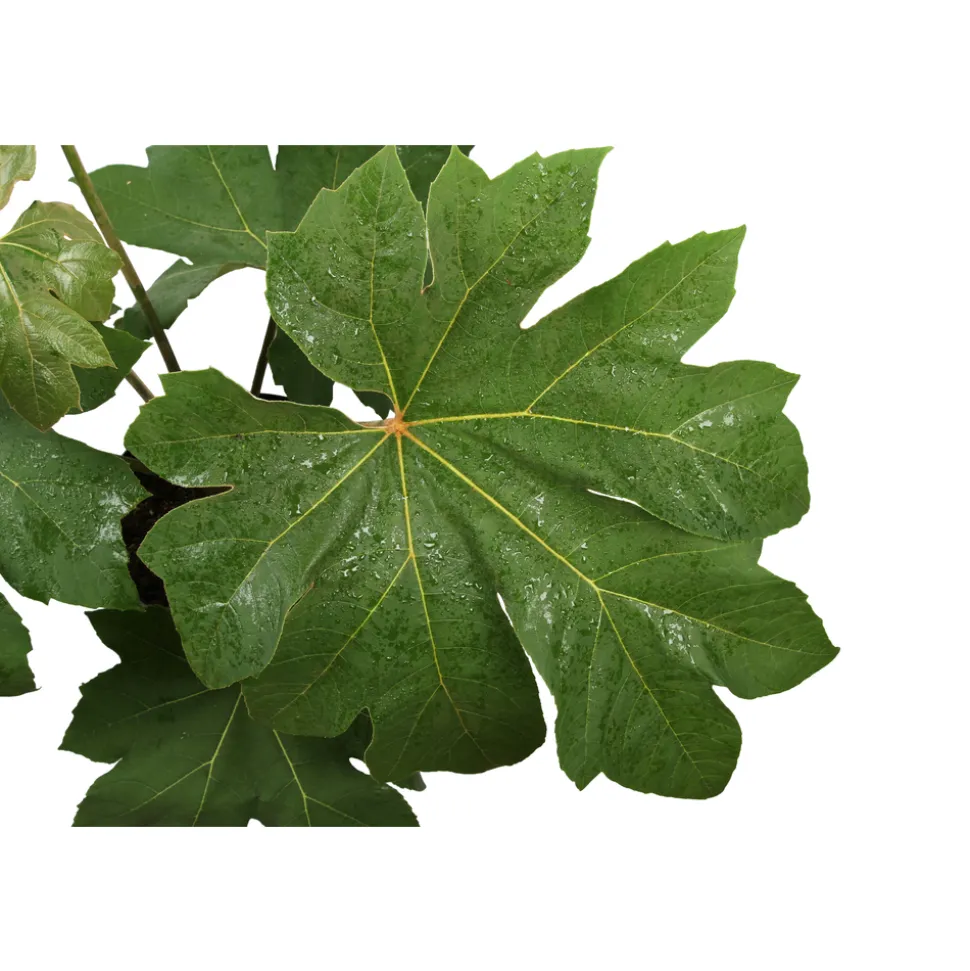 Une plante vivace arbustive, originaire de Chine et du Japon, qui peut atteindre jusqu’à 4 m de haut. Elle produit de grandes feuilles dentelées, très découpées, qui peuvent mesurer jusqu’à 80 cm de diamètre et qui sont caduques sous nos contrées. A la fin de l’été, elle produira de grandes grappes blanches, très mellifères. Sa croissance est rapide. Vous la planterez dans un bac ou un sol riche, frais bien drainé, sous une exposition au soleil non brûlant ou à mi ombre, à l’abri du vent.