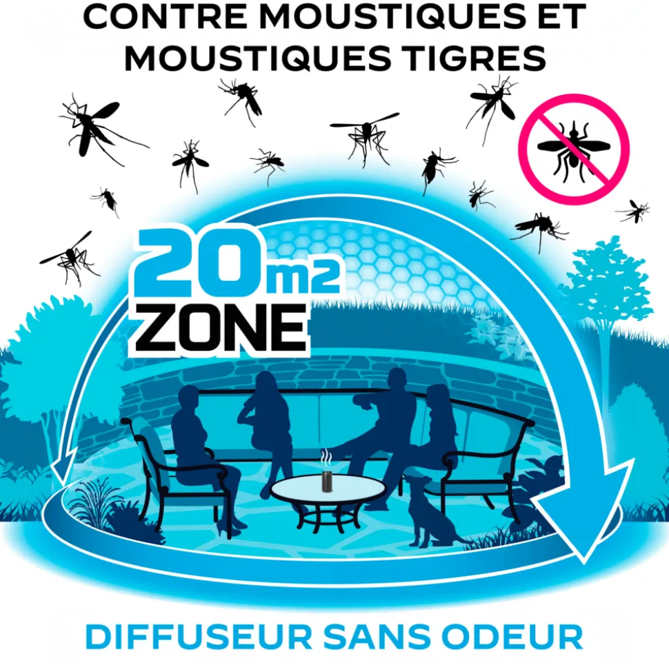 -ZONE ANTI-MOUSTIQUES DE 20M² : Le diffuseur vous protège en extérieur dans une zone anti-moustique de 20m², à raison de 4 heures par plaquette. Les moustiques ne vous piquent plus : ils ne vous approchent même plus !