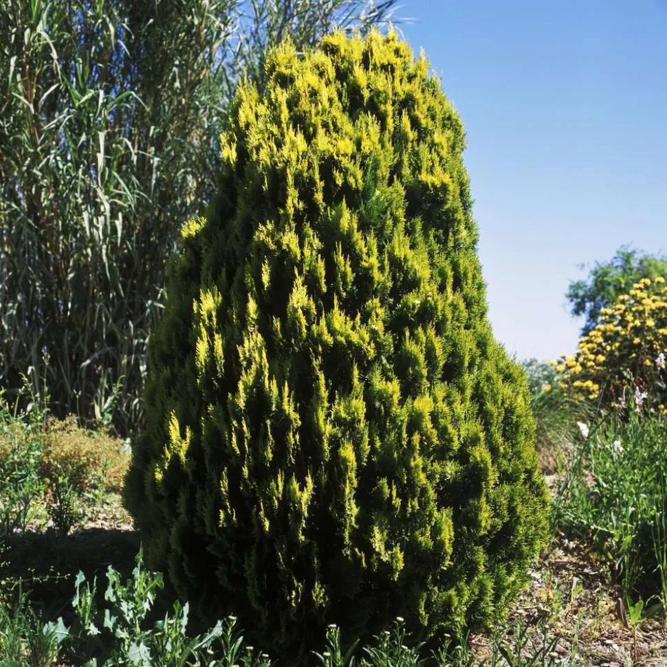 Un conifère de forme conique étroite, à la végétation compacte et serrée. Sa rapidité de croissance est moyenne. Son feuillage persistant présente une belle couleur dorée au printemps et en automne, puis prend un coloris plus clair en été, avant de virer au brun rougeâtre en hiver. Vous le planterez dans un sol frais, léger, bien drainé et l’installerez sous une exposition ensoleillée ou à mi ombre. Il supporte, le calcaire, des périodes de sécheresse, et ne réclame aucun entretien particulier.