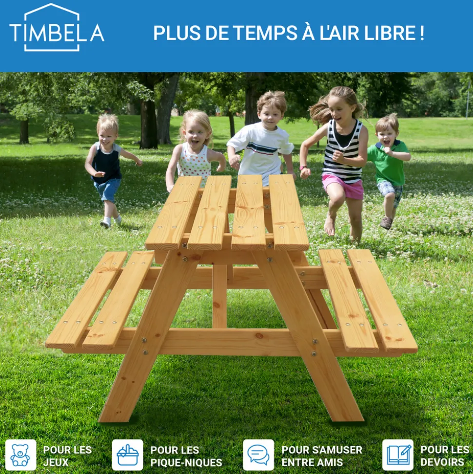 timbela m012-1 table d’enfants pour le jardin avec boite de rangement