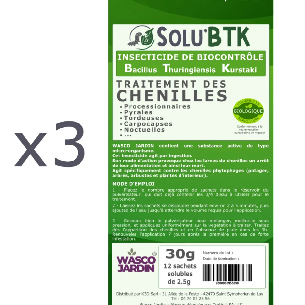 Bacillus thuringiensis subsp. kurstaki souche SA-11 – 32 000 UI/mg – Wasco Jardin