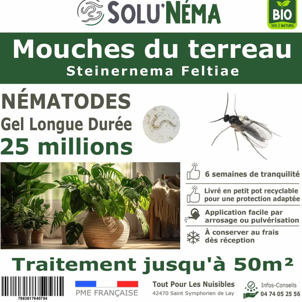 Traitement biologique contre la mouche des terreaux – sciarides à base de nématodes Steinernema Feltiaé (SF) 25 millions.