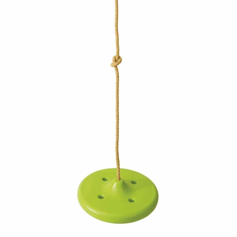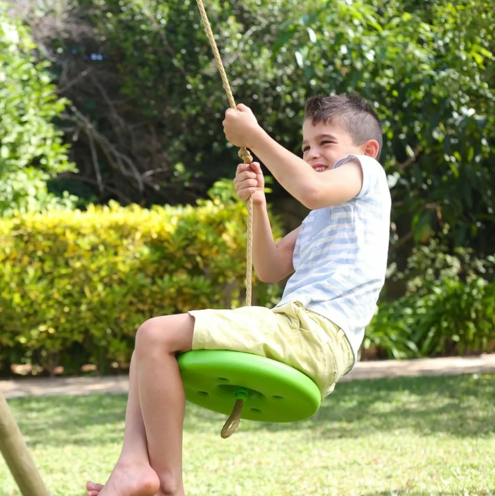 Balançoire ronde montée sur une corde de fixation qui permet à l’enfant de s’amuser en tournant à 360° pendant qu’il se balance.