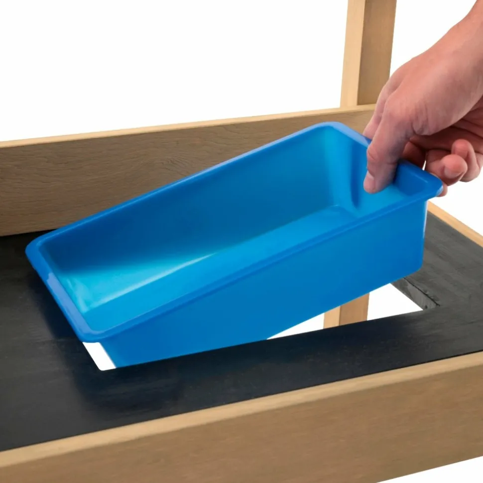 Cette cuisine en bois est équipée d’une table de cuisson peinte, d’un évier en plastique amovible, d’un porte-ustensiles, d’un comptoir, d’une étagère de rangement pratique et même d’un tableau noir pour noter les recettes essentielles !