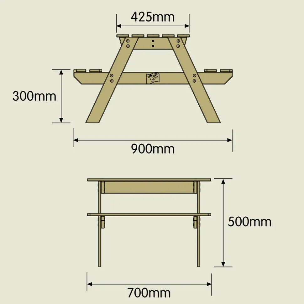 Magnifique table forestière composée d’un large plateau idéal pour les activités des plus jeunes, prendre son goûter ou même passer un bon repas entre amis.