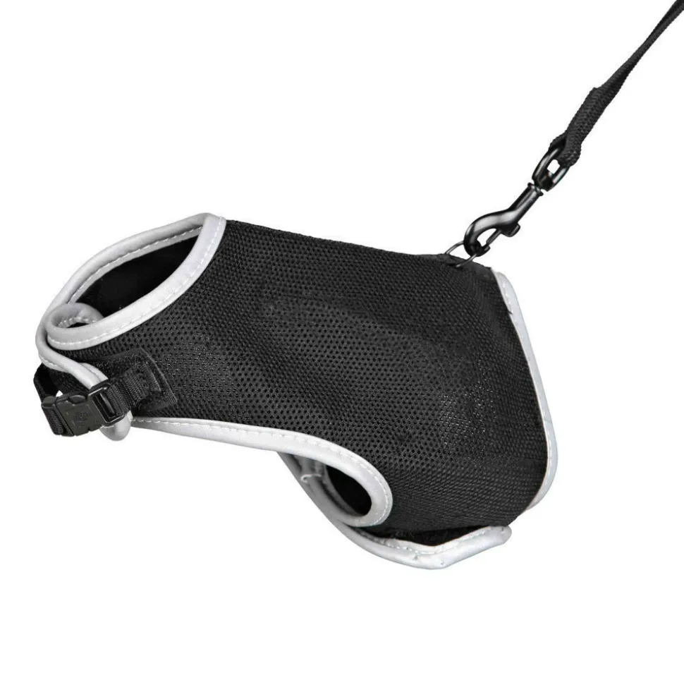 Harnais soft avec laisse.Tour de ventre: 24-42 cmAvec laisse entièrement élastique. 1.20mTissu en maille respirante.Rembourrage doux.Eléments réfléchissants.Réglable en continu au niveau de la poitrine et du ventre avec bande auto-agrippant.Protection supplémentaire avec la fermeture clip.Couleur aléatoire gris ou noir