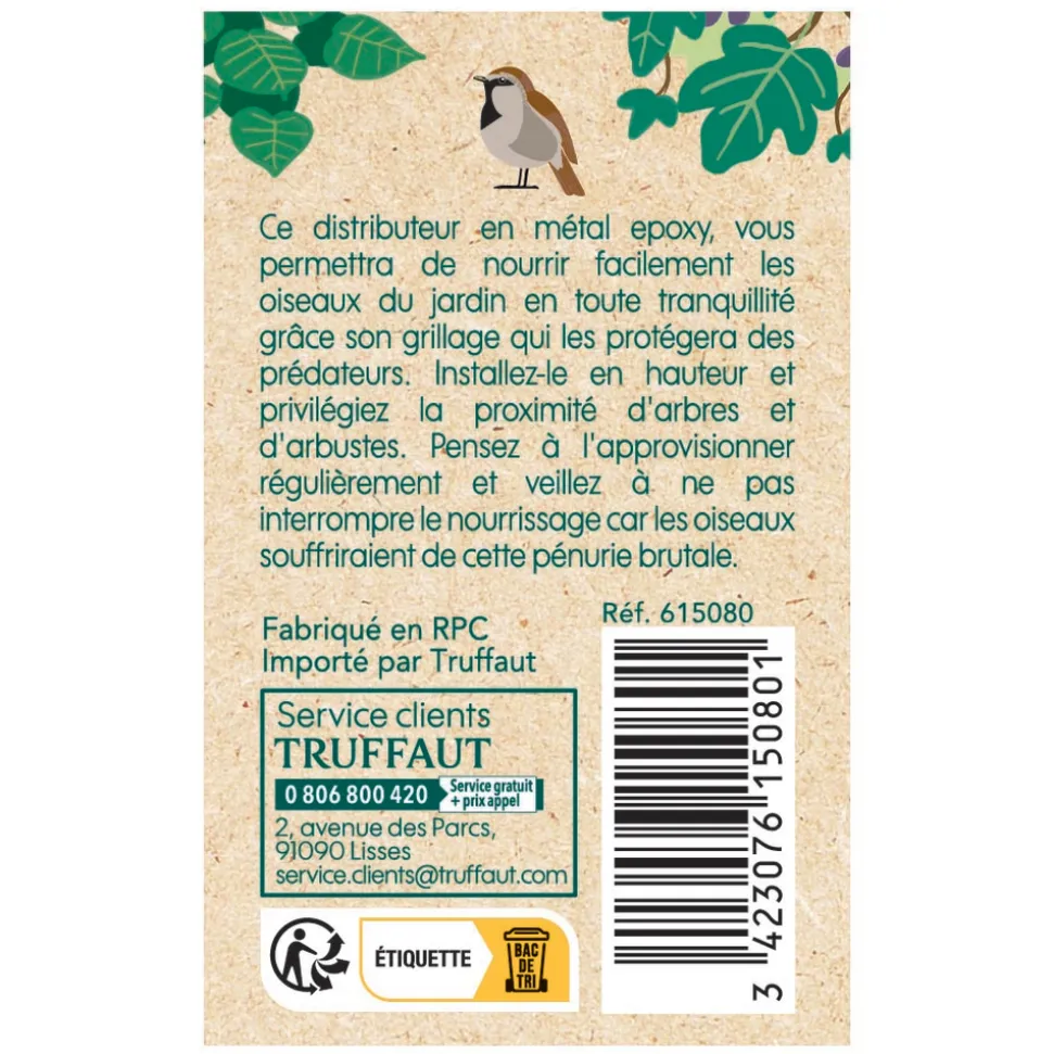 Ce distributeur de graines permettra aux oiseaux de votre jardin de manger à leur faim durant les périodes difficiles. Vous leur serez d’une grande aide pour passer les saisons sans encombre. Cette cage métallique est conçue pour exclure les écureuils et les grands oiseaux comme les pigeons. L 17.50 l 17.50 H 26.00 cm