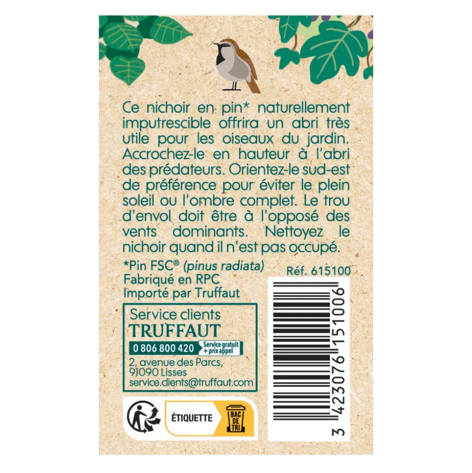 Si vous aimez observer les oiseaux, attirez-les avec ce beau nichoir Rondin en bois ! Vous aurez le plaisir de les voir s’ébattre devant votre fenêtre. Optez pour ce beau nichoir en bois imitant l’écorce d’arbre, qui convient à toutes les tailles d’oiseaux et décorera votre jardin. Dimensions : L 16 x l 14 x H 21 cm. Trou d’envol : D.3,2cm.