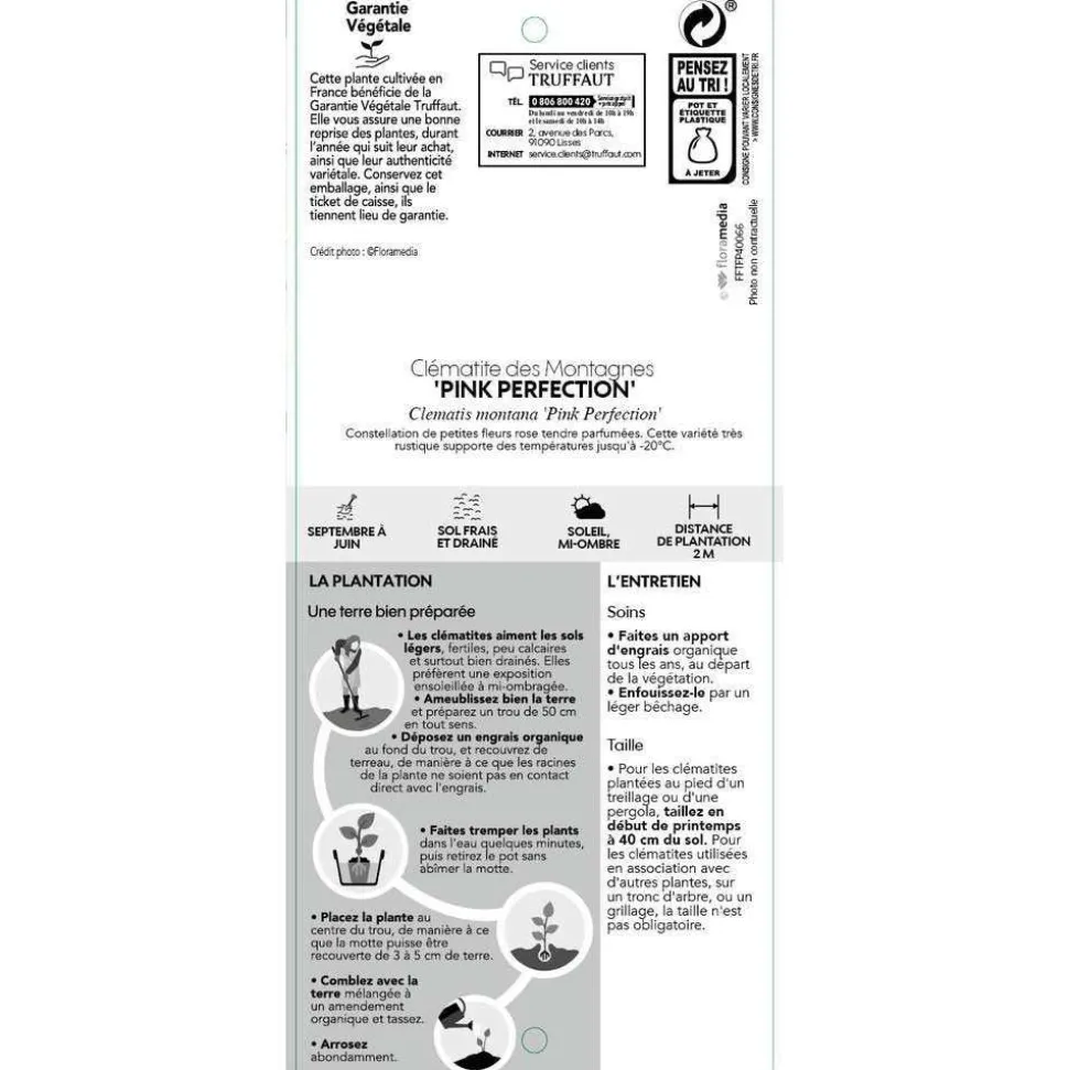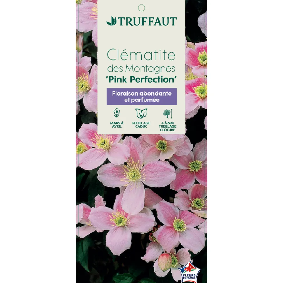 Le genre Clematis comprend environ 300 espèces, originaires de l’hémisphère Nord et d’Australie. Clematis montana est l’une de ces espèces, originaire de l’Himalaya et de l’Est de la Chine.’Pink Perfection’ est une variété horticole.La clématite ‘Pink Perfection’ est une clématite à petites fleurs simples, roses, parfumées. Elle fleurit en avril-mai. Feuillage caduc, vert.