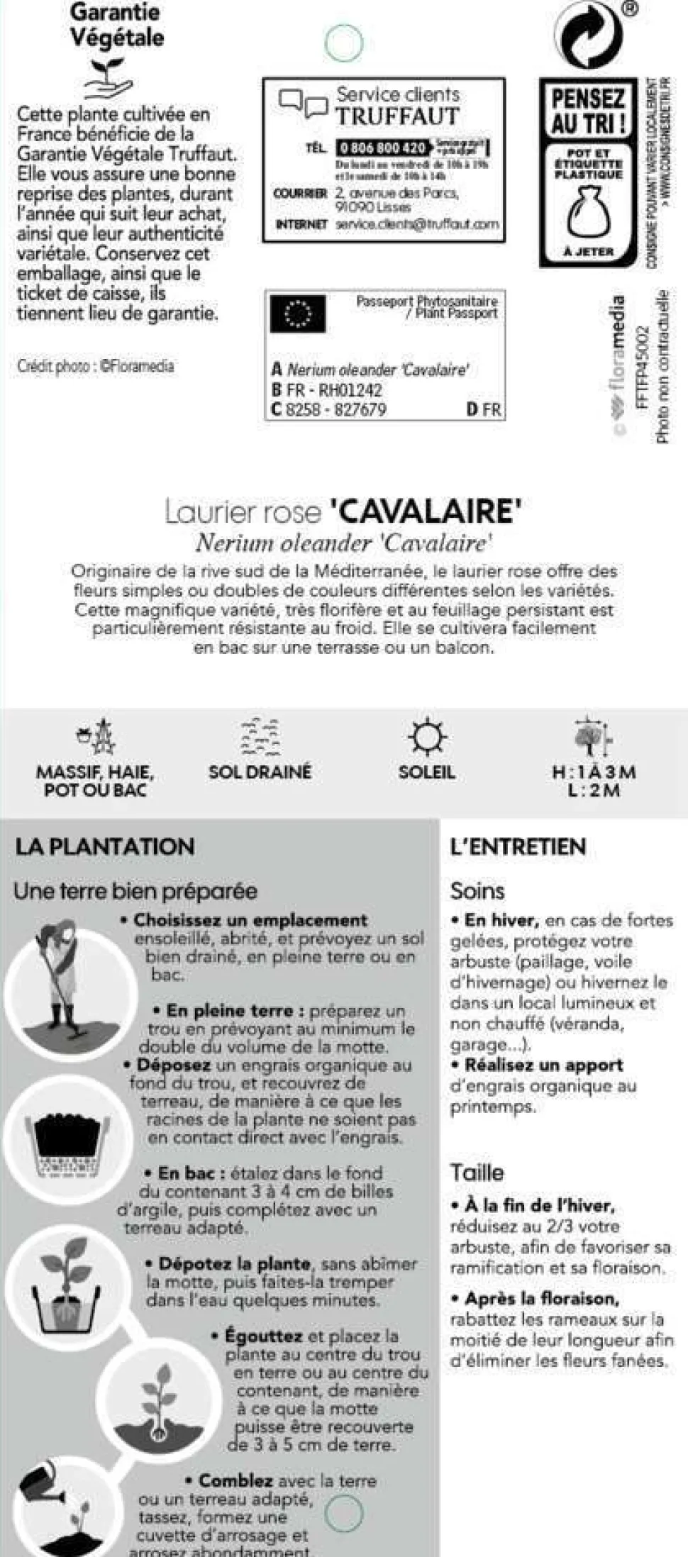 Attention, le laurier rose n’a rien à voir avec le laurier sauce. Le Laurier rose est très toxique (feuille, rameaux, fleurs) et ne doit absolument pas être ingéré. Pour la plantation, taille, rempotage, utilisez des gants.
