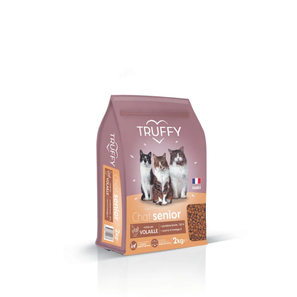 Truffy a été spécialement conçu pour répondre aux besoins nutritionnels de vos animaux de compagnie. Les croquettes pour chat adulte senior sont équilibrées, source de nutriments et de saveurs gourmandes pour votre compagnon. Soucieux d’offrir ce qu’il y a de meilleur à votre chat, Truffy garantit la sélection rigoureuse des ingrédients et un apport maîtrisé des nutriments essentiels pour son bien-être et sa vitalité.
