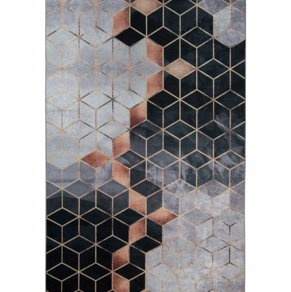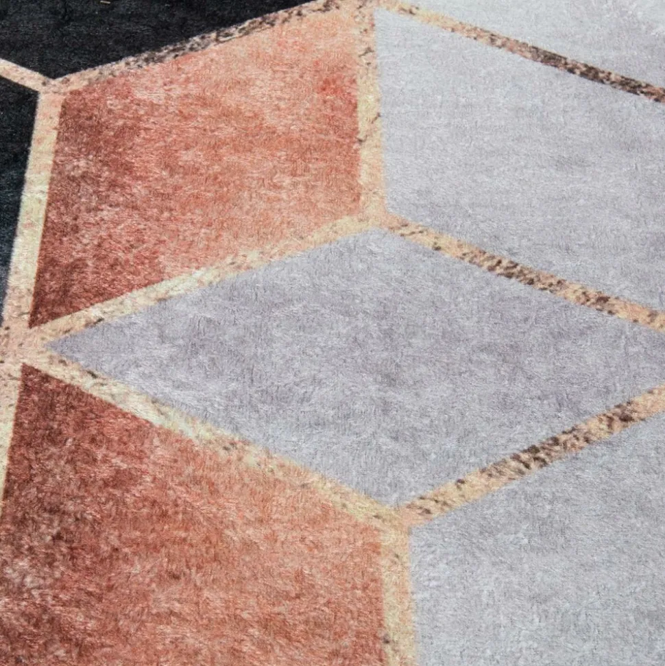 Tapis salon est idéal pour la décoration de la maison. Aux motifs Abstrait, tapis salon a été sélectionné pour son visuel, ses couleurs, mais aussi pour sa qualité. Il habillera à merveille tous types d’intérieur qu’ils soient modernes ou classiques. Ce tapis imprimé arbore un motif géométrique en 3D avec des cubes en nuances de noir, gris et touches dorées, ajoutant une élégance moderne à votre espace. Lavable en machine et antidérapant, il combine esthétique et praticité pour un style raffiné et con