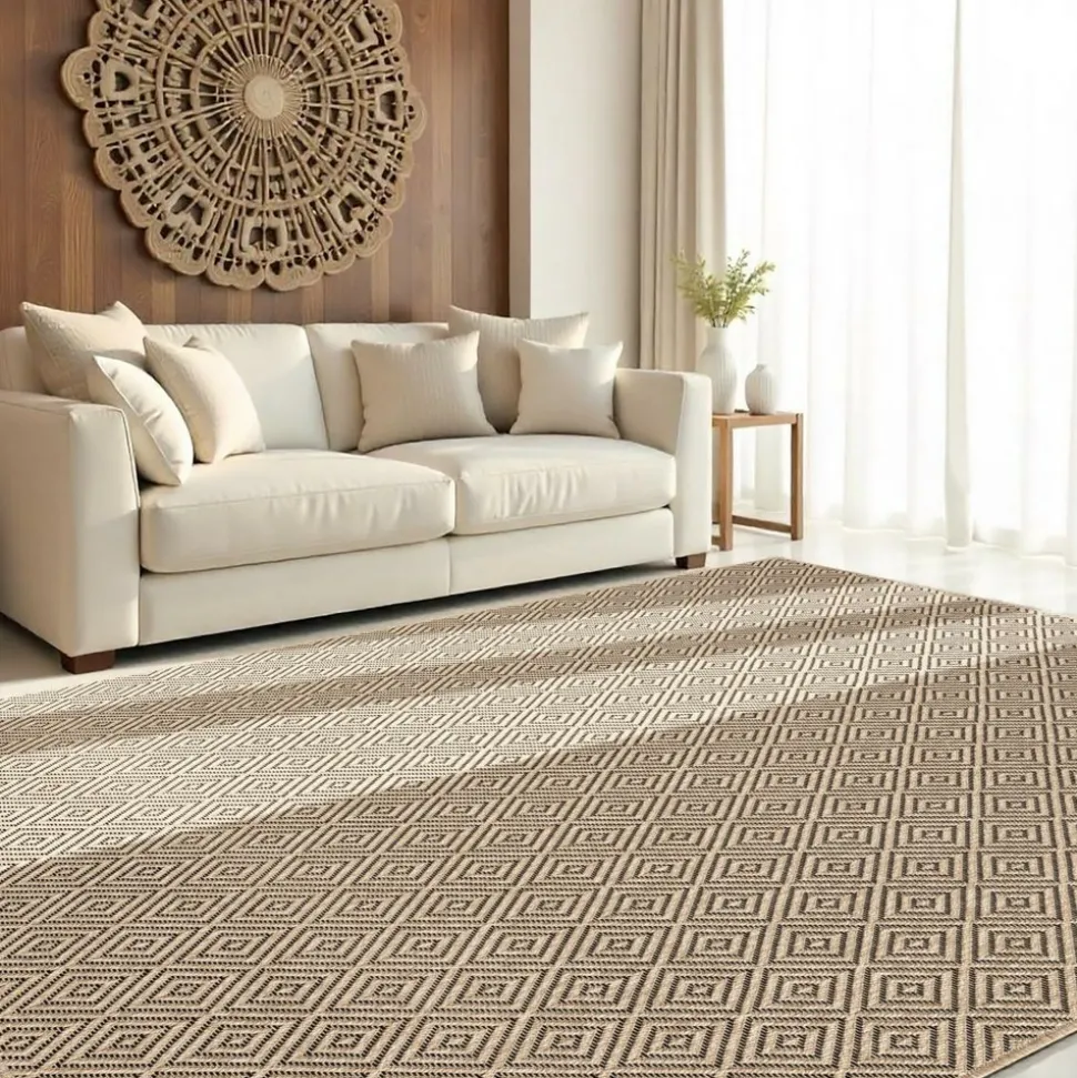 Tapis extérieur est idéal pour la décoration de la maison. Aux motifs Géométrique, tapis extérieur a été sélectionné pour son visuel, ses couleurs, mais aussi pour sa qualité. Il habillera à merveille tous types d’intérieur qu’ils soient modernes ou classiques. tapis extérieur intérieur 80×150 LYN13 REZY aspect jute ton sur ton