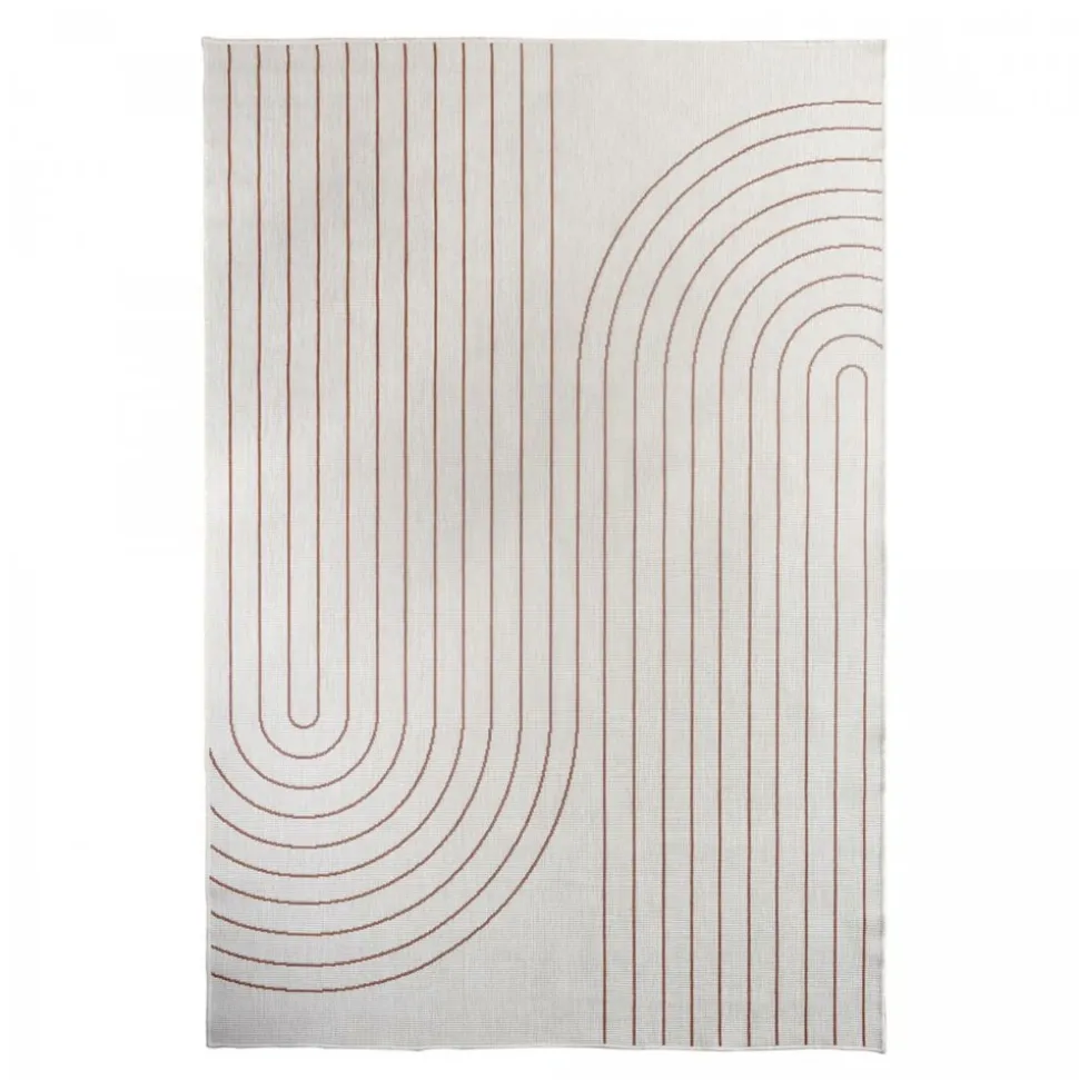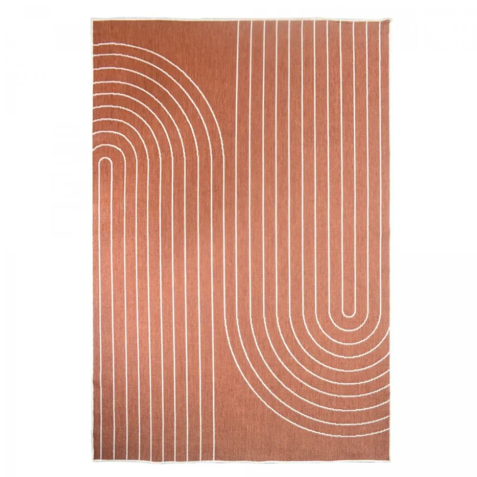 Tapis Kilim. Matiére : Polypropylène. Poids : 3.23 Gr. Fabrication : tissé. Forme : tapis Rectangulaire. Largeur : 120 cm. Longueur : 170 cm. Hauteur : 8 mm. Dimension idéal pour : terrasse, jardin. Couleur : terracota, écru. Motif : Géométrique. Pays d’origine : Belgique. Entretien aspirateur ou chiffon humide.