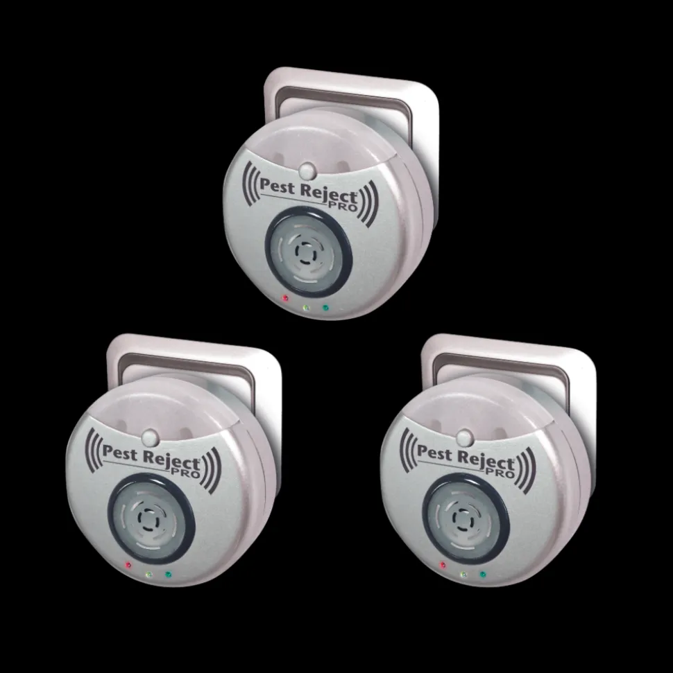 PEST REJECT PRO maintient les nuisibles à distance sans produit chimique. Il fonctionne grâce à une technologie à ultrasons électromagnétiques qui lui permet de couvrir 200m². La façon la plus simple de tenir les nuisibles à distances ! vendu en lot de 3.