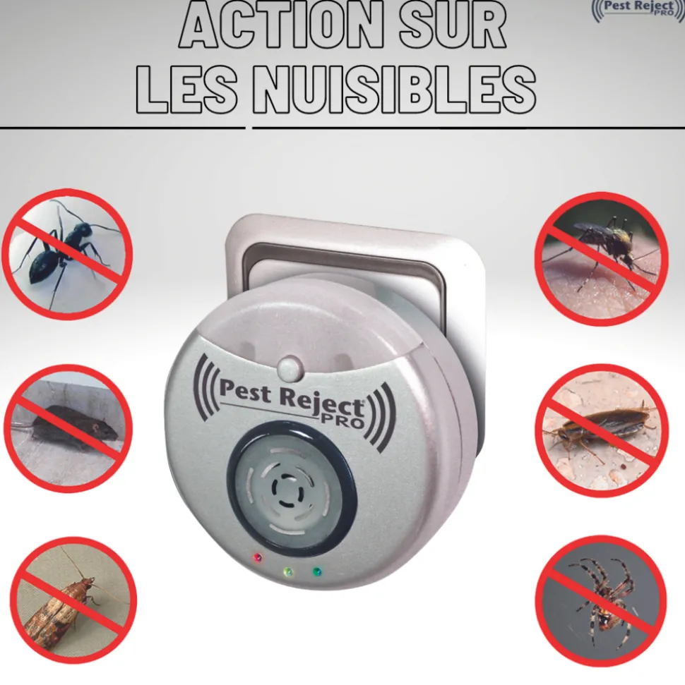 Répulsif : Le PEST REJECT PRO repousse les nuisibles tel que : sourie, cafard, moustique, mouche, araignée, mite, etc… de votre maison. C’est la façon la plus simple de tenir les nuisibles à distances !