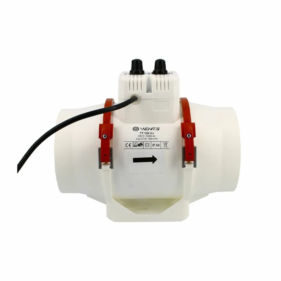 Cet extracteur de gaine TT-125 UN dispose d’un contrôleur qui permet de régler sa capacité de débit d’air en fonction de la température intérieur. Il est conçu pour un apport ou une extraction d’air dans tous locaux domestiques, cuisine, salle de bains, restaurant, serre horticole… Cet extracteur d’air est prévu pour un montage en ligne dans des conduites de ventilation rondes de diamètre 125mm son débit d’air max est de 280m3/h.