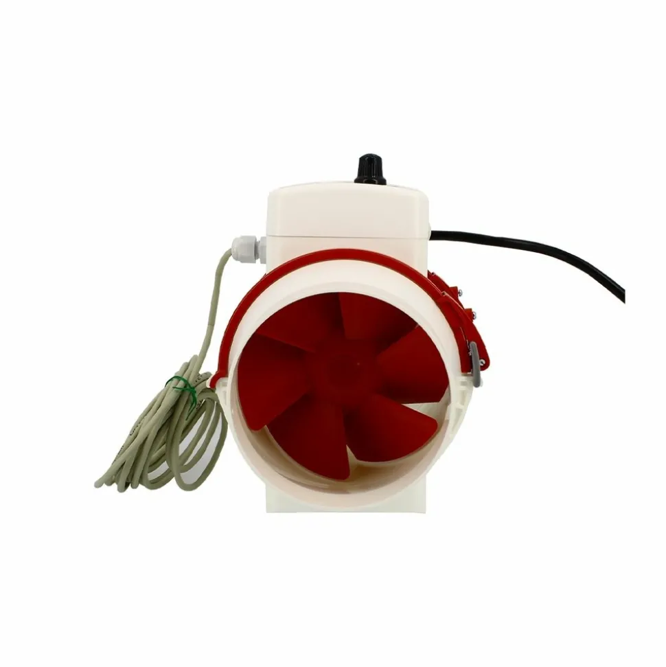 Le variateur de vitesse sera utile à l’ajustement de son flux d’air de 10 à 100%. Son thermostat permettra de déterminer une consigne de température entre 20 et 30°C. L’extracteur se déclenchera alors au maximum de sa capacité d’extraction choisie lorsque la température deviendra supérieure aux instructions de départ.
