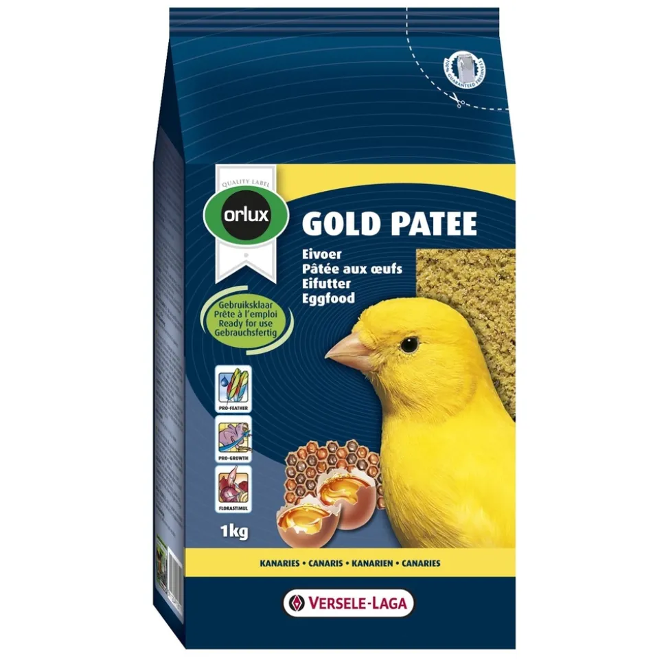 Aliment complémentaire pour oiseaux. Pâtée (jaune) d’élevage et d’entretien pour canaris, prête à l’emploi. , Composition: Œufs et produits d’œufs (30%), produits de la boulangerie, extraits de protéines végétales, huiles et graisses, miel, sucres, substances minérales, graines, FOS, MOS. , Constituants analytiques: Protéine 17%, Teneur en matières grasses 16%, Cellulose brute 2%, Cendres brutes 5%, Calcium 1,40%, Phosphore 0,40%, Lysine 0,90%, Méthionine 0,30%, Thréonine 0,65%, Tryptophane 0,20%, Cystine 0,30%.