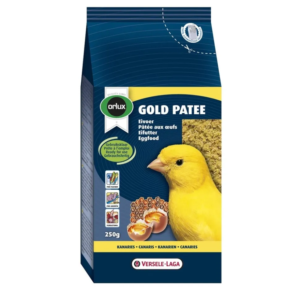 Aliment complémentaire pour oiseaux. Pâtée (jaune) d’élevage et d’entretien pour canaris, prête à l’emploi. , Composition: Œufs et produits d’œufs (30%), produits de la boulangerie, extraits de protéines végétales, huiles et graisses, miel, sucres, substances minérales, graines, FOS, MOS. , Constituants analytiques: Protéine 17%, Teneur en matières grasses 16%, Cellulose brute 2%, Cendres brutes 5%, Calcium 1,40%, Phosphore 0,40%, Lysine 0,90%, Méthionine 0,30%, Thréonine 0,65%, Tryptophane 0,20%, Cystine 0,30%.