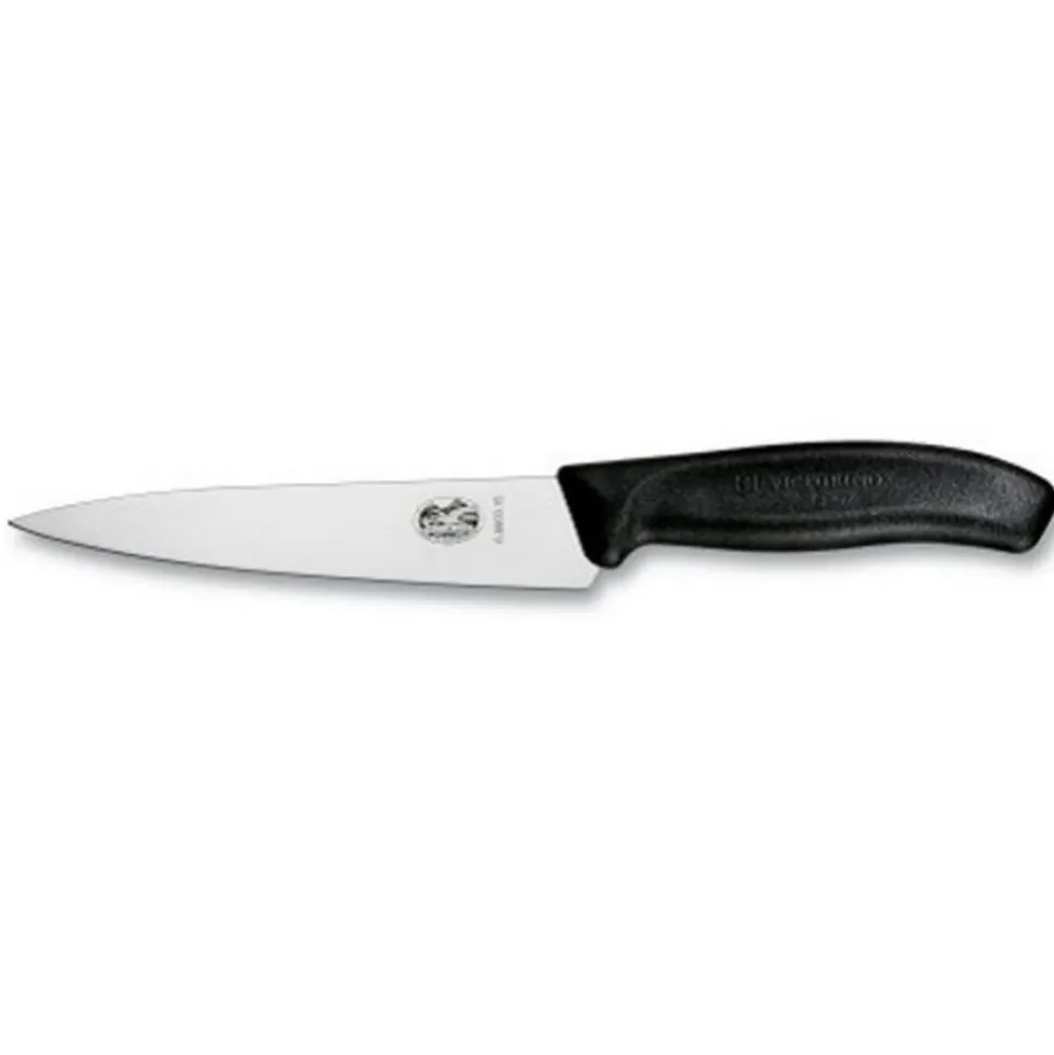 Couteau à découper et éminceur Victorinox 6.8003.15B. Cuisiner ne se résume pas à la simple préparation d’aliments. Cuisiner est une passion, un hobby, une culture et parfois aussi un art. Mais cuisiner devant tout d’abord être un plaisir, le choix adéquat des ustensiles de cuisine est donc déterminant. Avec sa lame en acier, ce couteau est équipé d’un manche en Fibrox anti-dérapant et ergonomique. Cela vous permettra de préparer vos aliments en toute sérénité et sécurité. Facile à nettoyer et compatible lave-vaisselle.