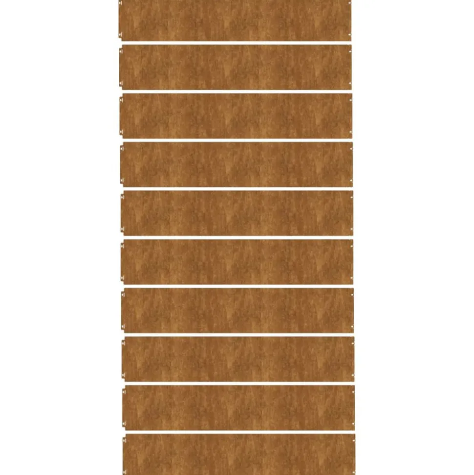 Ces bordures de pelouse créent des limites claires pour les jardins, les allées, les pelouses et les cours, empêchant les racines de se propager dans les parterres de fleurs et ajoutant un charme visuel à votre paysage. Matériau durable : acier corten, également connu sous le nom d’acier patinable. Cet acier est anti-corrosif par nature. Il développe une couche protectrice contre la corrosion dès sa première exposition aux conditions atmosphériques. Il n’est donc pas nécessaire de le peindre. Cela peut vous aider à économiser sur les coûts d’entretien et de réparation. La couleur marronne distinctive de l’acier corten attirera sûrement tous les regards. Enfin, l’acier résistant aux intempéries est exceptionnellement durable et résiste à l’épreuve du temps.Connexion rapide et facile : le système d’interconnexion intelligent permet de connecter facilement les segments de bordure sans avoir besoin d’aucun outil.Applications larges : cette bordure de pelouse polyvalente est largement utilisée dans les espaces extérieurs tels que les jardins, les cours, les zones boisées, les sentiers, les allées, les parterres de fleurs, etc. Bon à savoir :Ce produit n’est pas encore rouillé et a une couleur métallique normale lorsque vous le recevez, mais la rouille se développera au fil du temps. Vous pourriez accélérer le processus de rouille en le pulvérisant avec de l’eau savonneuse et de l’eau salée. Pour que vos vêtements ne soient pas tachés, évitez tout contact avec la couche de rouille qui se développe.
