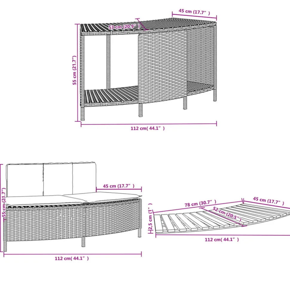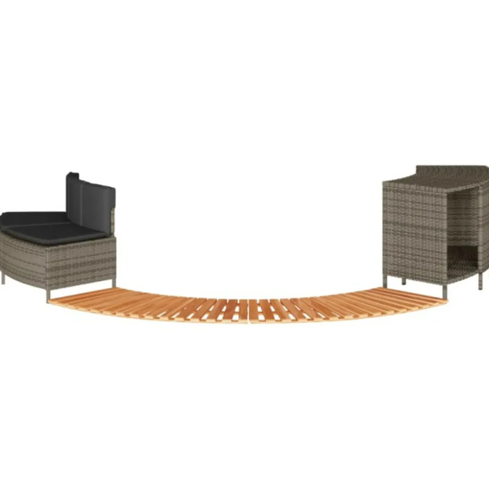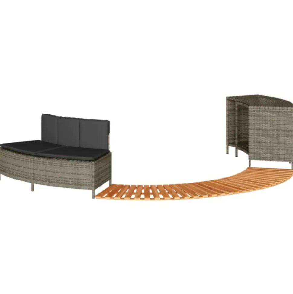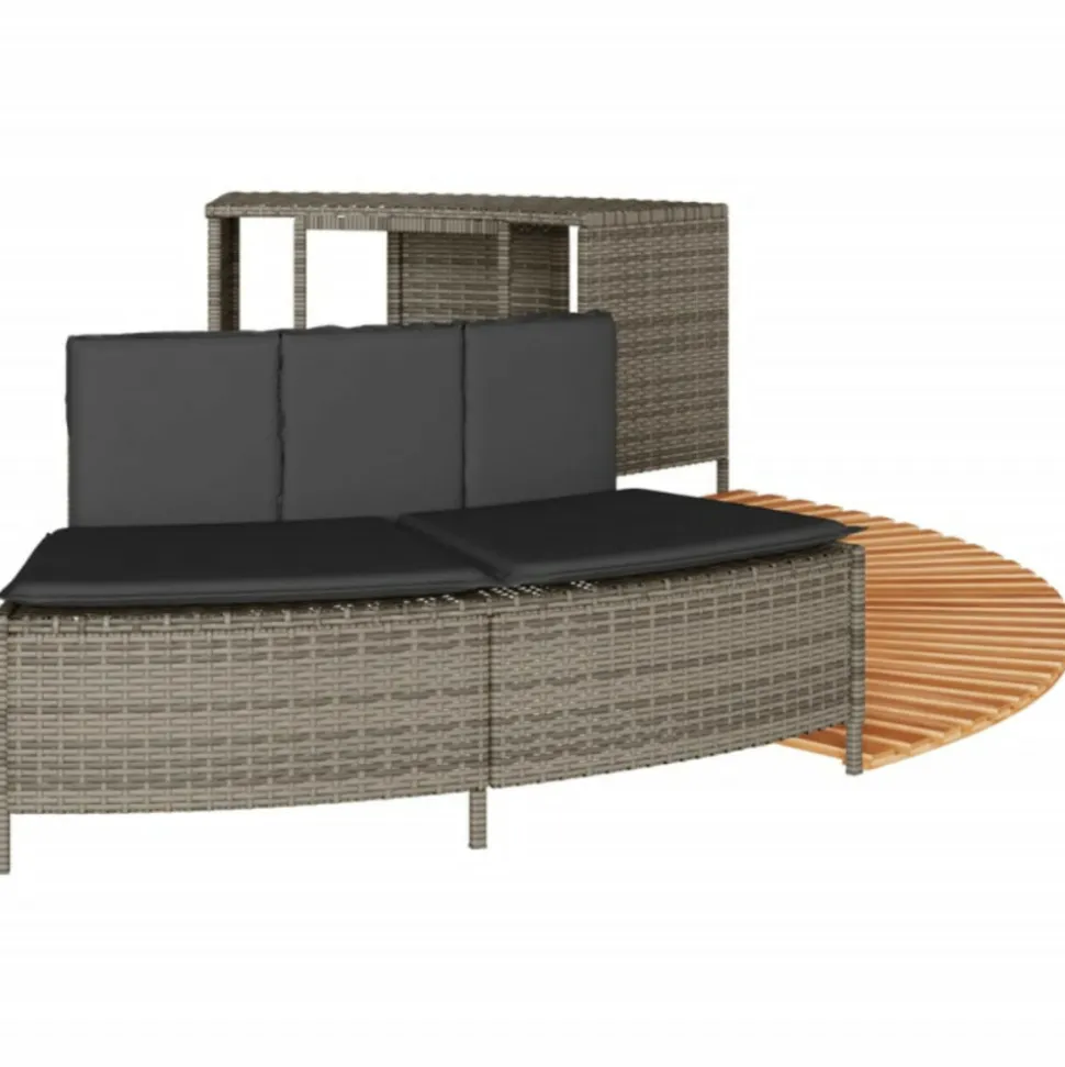Améliorez l’expérience du spa pour vous et vos invités avec cet élégant cadre de spa. Matériau durable : la résine tressée, également connue sous le nom de poly rotin, est un matériau synthétique solide et nécessitant peu d’entretien qui ressemble au rotin naturel. Elle est légère, facile à nettoyer et couramment utilisée pour les meubles d’extérieur en raison de sa durabilité et de ses propriétés de résistance aux intempéries.Multifonctionnel : avec un support de rangement, une marche en bois et un banc de jardin, ce cadre de spa crée un espace de spa plus fonctionnel et plus convivial.Housse amovible et lavable : le coussin de siège est doté d’une housse amovible pour un lavage et un entretien faciles. La housse du coussin de dossier est dotée d’un rabat à l’arrière pour une fixation facile au dossier.Marche stable et sûre : la marche est fabriquée en bois d’acacia massif, offrant une surface stable et robuste pour des marches sécurisées.Cadre robuste et stable : le cadre en acier enduit de poudre assure la solidité et la stabilité du meuble de jardin pour une utilisation quotidienne à l’extérieur. Bon à savoir :Pour que vos meubles d’extérieur restent beaux, nous vous recommandons de les protéger avec une housse imperméable. Capacité de charge maximale (par siège) : 110 kgRésistance aux UVAssemblage requis : ouiBanc :Couleur : grisMatériau : résine tressée, acier enduit de poudreDimensions : 73/112 x 45 x 55 cm (L x l x H)Profondeur du siège : 43 cmHauteur du siège à partir du sol : 30 cmCoussin :Couleur : gris foncéMatériau de la couverture : tissu (100 % polyester)Matériau de remplissage : mousseDimensions du coussin de siège : 82/112 x 44 x 3 cm (l x P x é)Dimensions du coussin de dossier : 77 x 22 x 3 cm (L x l x é)Support de rangement :Couleur : noirMatériau : résine tressée, acier enduit de poudreDimensions : 78/112 x 45 x 55 cm (L x l x H)Marche :Matériau : bois d’acacia massif avec une finition à l’huile naturelleDimensions : 78/112 x 45 x 2,5 cm (L x l x H)La livraison contient :1 x banc1 x support de rangement2 x marche1 x coussin de dossier1 x coussin d’assise avec housse amovible et lavableCapacité de charge maximale (par siège) : 110 kgRésistance aux UVAssemblage requis : ouiBanc :Couleur : grisMatériau : résine tressée, acier enduit de poudreDimensions : 73/112 x 45 x 55 cm (L x l x H)Profondeur du siège : 43 cmHauteur du siège à partir du sol : 30 cmCoussin :Couleur : gris foncéMatériau de la couverture : tissu (100 % polyester)Matériau de remplissage : mousseDimensions du coussin de siège : 82/112 x 44 x 3 cm (l x P x é)Dimensions du coussin de dossier : 77 x 22 x 3 cm (L x l x é)Support de rangement :Couleur : noirMatériau : résine tressée, acier enduit de poudreDimensions : 78/112 x 45 x 55 cm (L x l x H)Marche :Matériau : bois d’acacia massif avec une finition à l’huile naturelleDimensions : 78/112 x 45 x 2,5 cm (L x l x H)La livraison contient :1 x banc1 x support de rangement2 x marche1 x coussin de dossier1 x coussin d’assise avec housse amovible et lavable