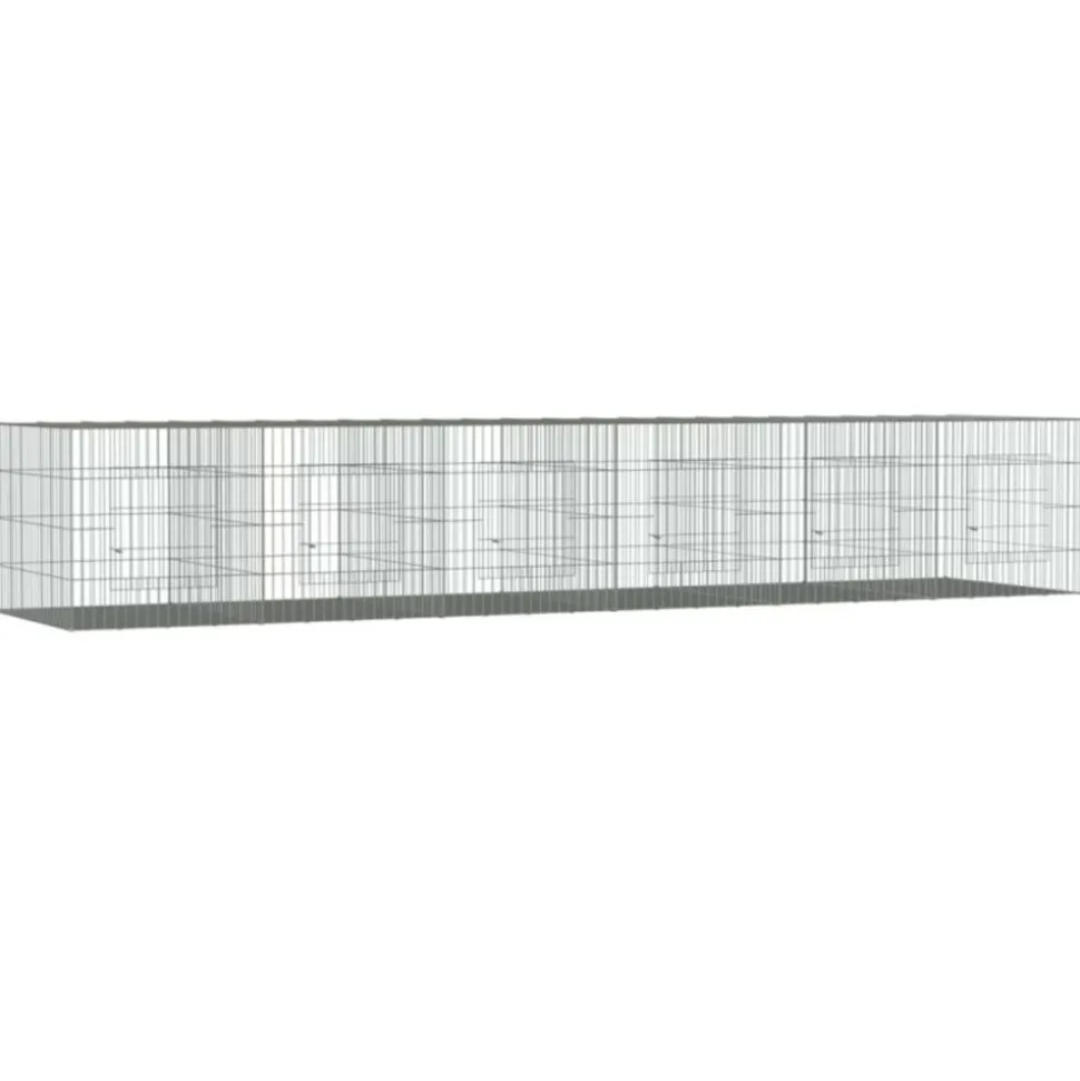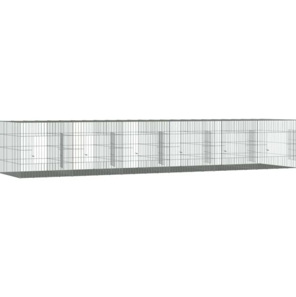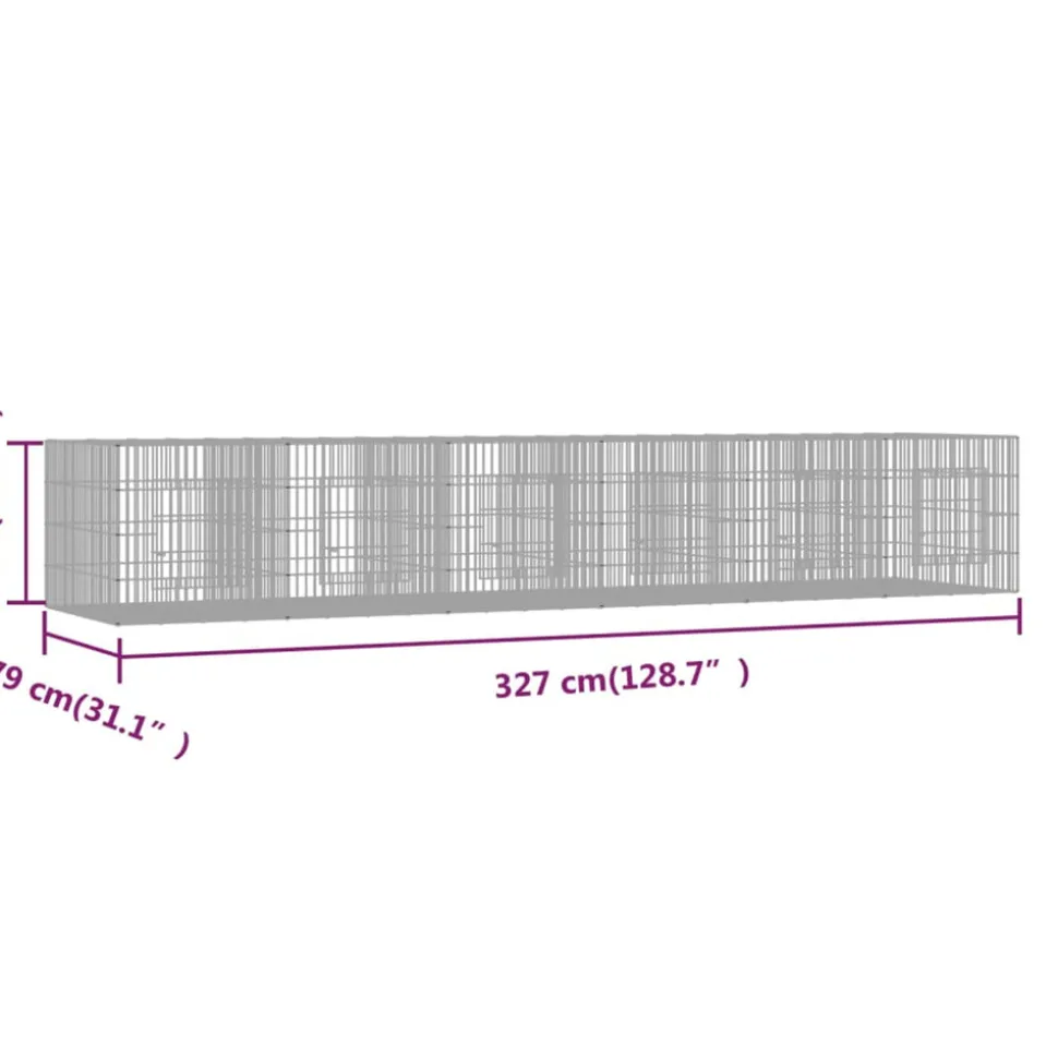 Cette cage à lapin est un excellent choix pour loger en toute sécurité de petits animaux tels que des lapins. Matériau durable : ce clapier est fabriqué en fer galvanisé, robuste et durable, ce qui garantit des années d’utilisation avec peu d’entretien.Conception ventilée : la cage à lapin conçue avec un cadre en fil de fer la rend bien ventilée pour garder l’air frais et propre, ce qui est bénéfique pour la santé de vos amis à fourrure bien-aimés.Compartiment séparé : le parc à lapins est divisé en plusieurs compartiments avec des panneaux, permettant à certains lapins de vivre ensemble. Couleur : argentéMatériau : fer galvaniséDimensions : 327 x 79 x 54 cm (L x l x H)Taille du panneau : 54 x 54 cm (L x l) / 78 x 54 cm (L x l)Taille de la maille : 3 x 13,5 cm (L x l)L’assemblage est requis Attention ! Les fils métalliques peuvent être pointus et tranchants ! Portez des chaussures de sécurité et des gants de protection lors de l’installation !Couleur : argentéMatériau : fer galvaniséDimensions : 327 x 79 x 54 cm (L x l x H)Taille du panneau : 54 x 54 cm (L x l) / 78 x 54 cm (L x l)Taille de la maille : 3 x 13,5 cm (L x l)L’assemblage est requis