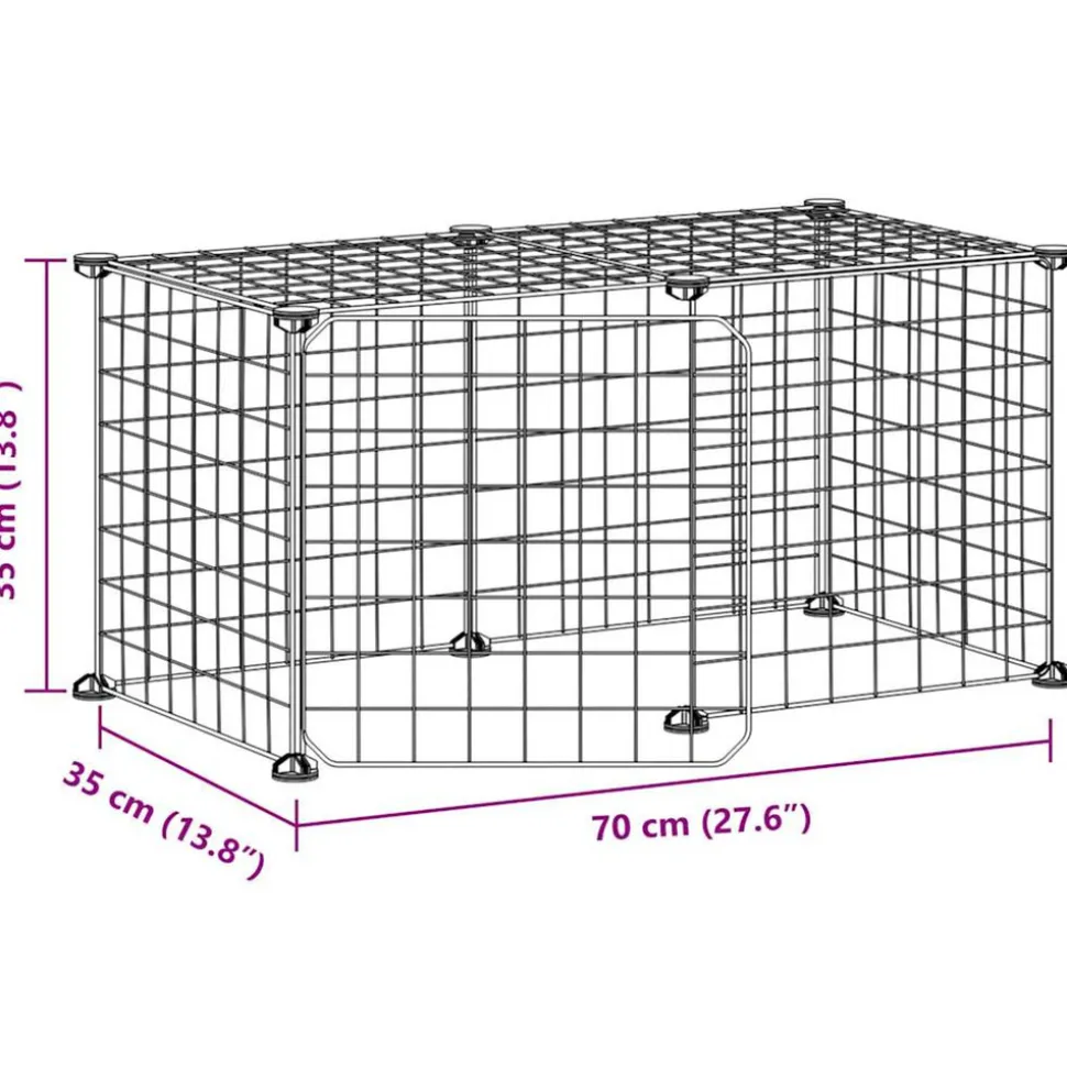 Cette cage pour animaux de compagnie offre un espace clos spacieux et sûr pour que vos adorables animaux de compagnie puissent faire de l’exercice, jouer et se reposer. Matériau robuste : la cage pour animaux est fabriquée en acier enduit de poudre, robuste et durable, garantissant des années d’utilisation avec peu d’entretien.Montage facile : la cage comprend plusieurs panneaux, ce qui vous permet de l’assembler selon la forme et la taille que vous souhaitez.Compartiment spacieux : la cage pour animaux offre beaucoup d’espace pour que vos animaux de compagnie puissent jouer et se reposer tout en restant en sécurité dans les limites.Porte pratique : la cage pour animaux de compagnie dispose également d’une porte pratique, ce qui rend les soins à vos animaux de compagnie beaucoup plus commodes. Remarque : Chaque produit est livré avec un manuel de montage dans la boîte pour un montage facile.