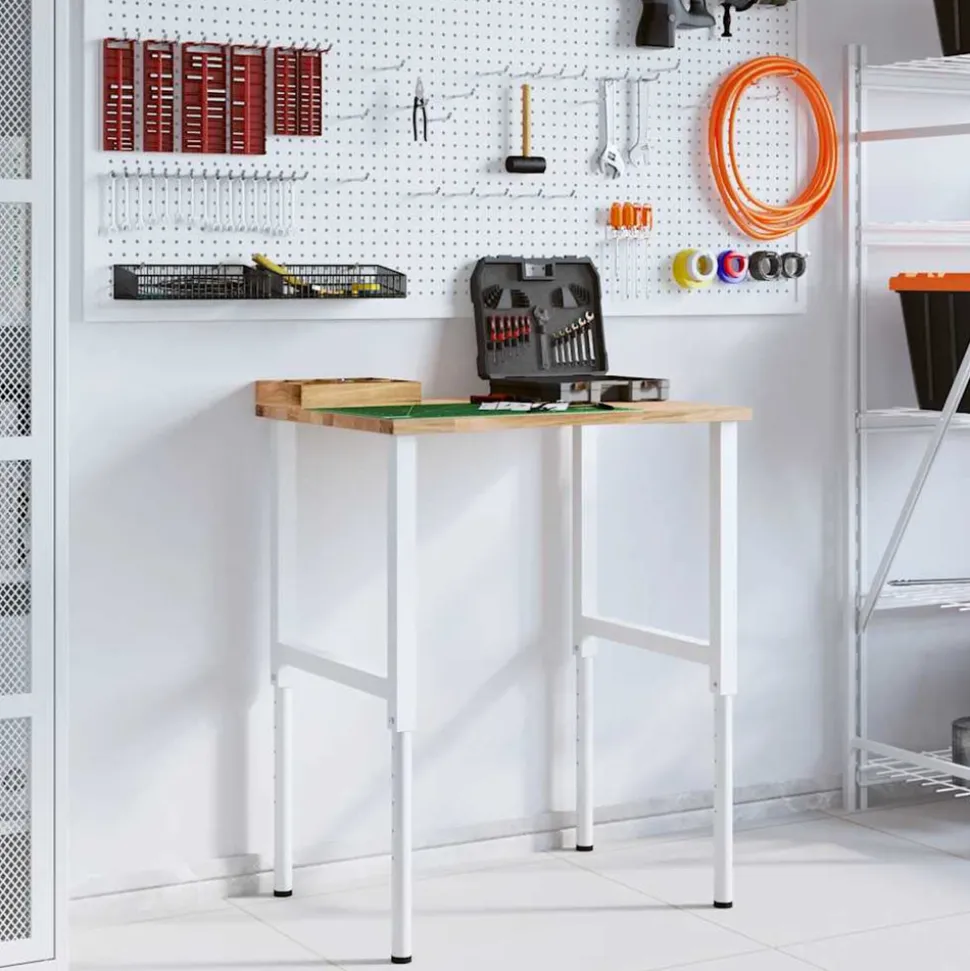 L’établi est une aide précieuse si vous souhaitez terminer des travaux de réparation ou réaliser vos rêves de bricolage ! Matériau robuste et stable : le bois de chêne massif est connu pour sa solidité, sa durabilité et la beauté de son grain, ce qui en fait un matériau idéal pour les meubles de longue durée. Sa résistance naturelle aux insectes et aux champignons permet aux meubles en chêne de rester attrayants et fonctionnels pendant des années.Cadre stable et durable : le cadre en métal enduit de poudre est solide, stable, durable et résistant à la corrosion et aux intempéries, ce qui garantit des performances durables.Grande surface de travail : la table de travail offre une grande surface de travail pour placer vos perceuses, tambours de câble et autres accessoires d’outillage.Utilisation polyvalente : doté d’un design simple et épuré, vous pouvez l’utiliser comme établi ou comme table de travail selon vos besoins. Le poste de travail est conçu pour être un meuble pratique et commode. Bon à savoir :Chaque article est unique, avec des variations de couleurs et de grains. La livraison est aléatoire, ce qui garantit l’exclusivité et l’individualité de votre produit.Nous recommandons d’utiliser un tournevis plutôt qu’une perceuse électrique pour éviter que le bois ne se fissure lors de la fixation des pieds. Attention :Ce dessus de table n’a pas de trous pré-percés et les vis ne sont pas incluses. Les trous doivent donc être pré-percés et les vis doivent être achetées avant d’assembler cette table de travail.