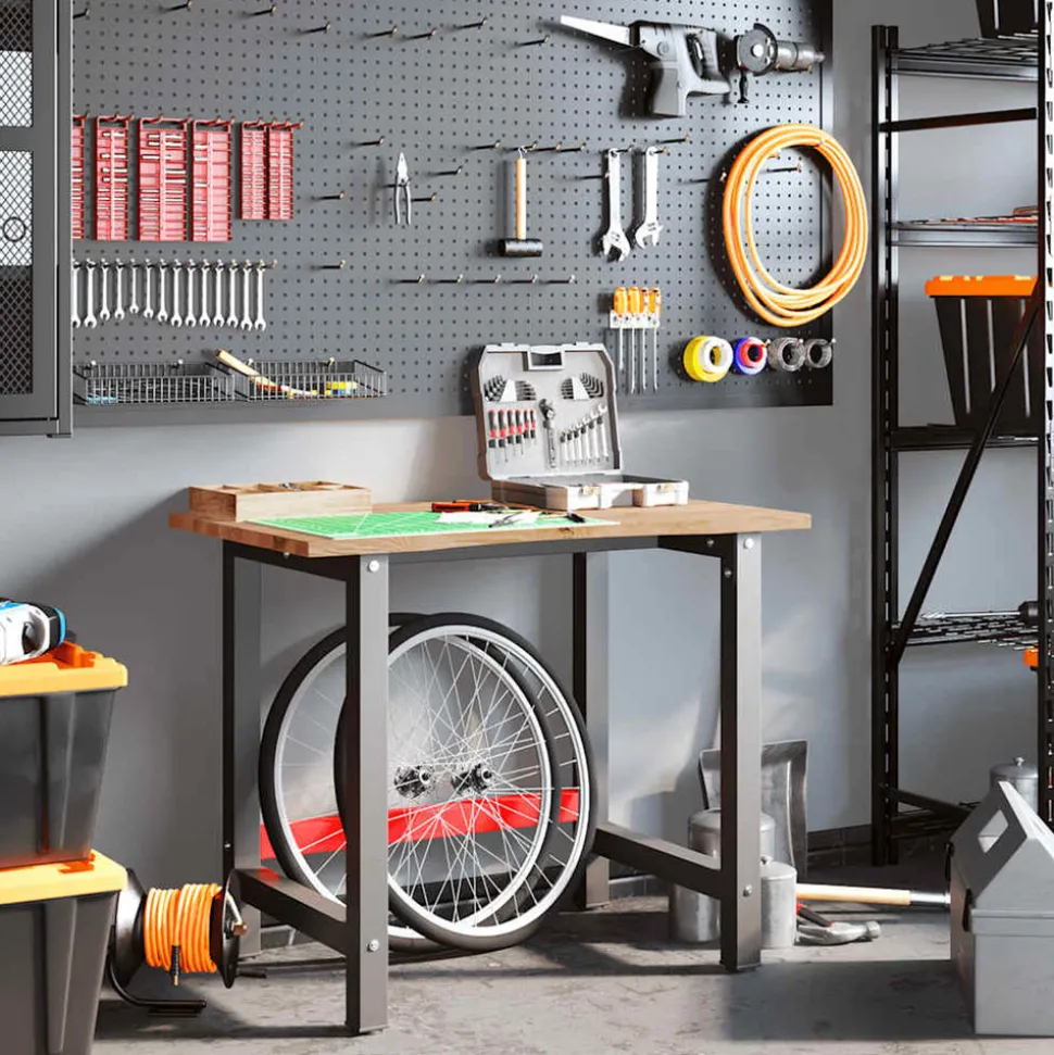 L’établi est une aide précieuse si vous souhaitez terminer des travaux de réparation ou réaliser vos rêves de bricolage ! Matériau robuste et stable : le bois de chêne massif est connu pour sa solidité, sa durabilité et la beauté de son grain, ce qui en fait un matériau idéal pour les meubles de longue durée. Sa résistance naturelle aux insectes et aux champignons permet aux meubles en chêne de rester attrayants et fonctionnels pendant des années.Cadre stable et durable : le cadre en métal enduit de poudre est solide, stable, durable et résistant à la corrosion et aux intempéries, ce qui garantit des performances durables.Grande surface de travail : la table de travail offre une grande surface de travail pour placer vos perceuses, tambours de câble et autres accessoires d’outillage.Utilisation polyvalente : doté d’un design simple et épuré, vous pouvez l’utiliser comme établi ou comme table de travail selon vos besoins. Le poste de travail est conçu pour être un meuble pratique et commode. Bon à savoir :Chaque article est unique, avec des variations de couleurs et de grains. La livraison est aléatoire, ce qui garantit l’exclusivité et l’individualité de votre produit.Nous recommandons d’utiliser un tournevis plutôt qu’une perceuse électrique pour éviter que le bois ne se fissure lors de la fixation des pieds. Attention :Ce dessus de table n’a pas de trous pré-percés et les vis ne sont pas incluses. Les trous doivent donc être pré-percés et les vis doivent être achetées avant d’assembler cette table de travail. Dimensions totales : 100 x 60 x 81,5 cm (L x l x H)Assemblage requis : ouiDessus de table :Couleur : marron clairMatériau : bois de chêne massif, finement poncé avec un vernis légerÉpaisseur du plan de travail : 2,5 cmForme : rectangulairePieds de la table :Couleur : noir et rougeMatériau : métal enduit de poudreDimensions : 80 x 57 x 79 cm (L x l x H)Taille de vis recommandée (non incluses) : 5 x 60 mm (Diamètre x L), max. 16 pcsLa livraison contient :1 x dessus de table1 x pied de table