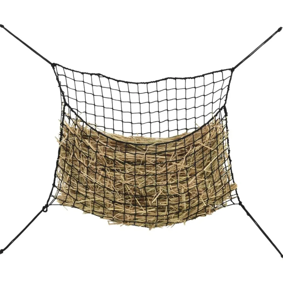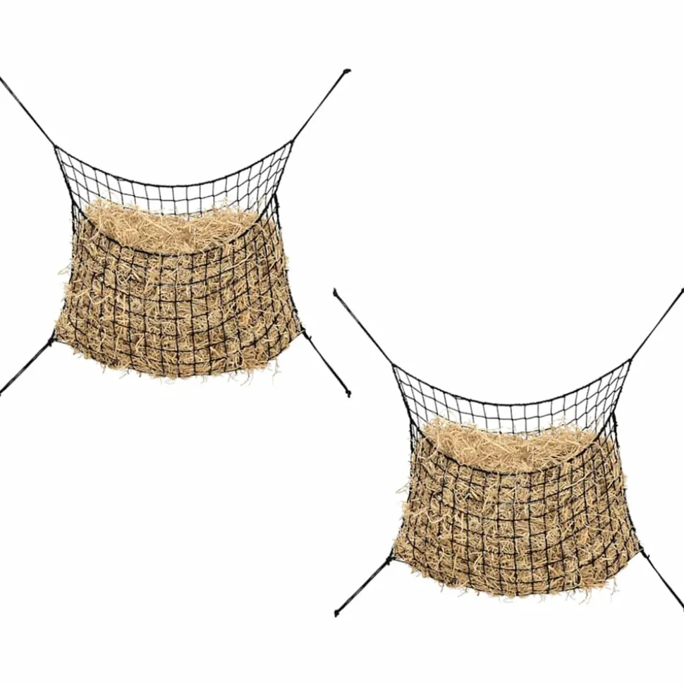 Cet ensemble de 2 filets à foin résistant est idéal pour garder la nourriture des cheveux ou des poneys. Pratique et fonctionnel : ce filet à foin permet de réguler le rythme alimentaire des chevaux, d’éviter qu’ils ne mangent trop et de favoriser une digestion saine.Réduction des déchets : le filet empêche le foin d’être piétiné ou dispersé, ce qui permet au cheval d’en consommer une plus grande quantité, réduisant ainsi considérablement les pertes de foin.Commodité : le filet à foin pour alimentation lente est pratique pour nourrir les animaux lorsque vous n’êtes pas à l’étable. Il permet de contenir le foin, d’éviter les dégâts et de faciliter l’alimentation en déplacement.Facile à transporter et à ranger : le filet à foin pour chevaux est pliable, facile à transporter et à ranger, et ne prend pas trop de place.