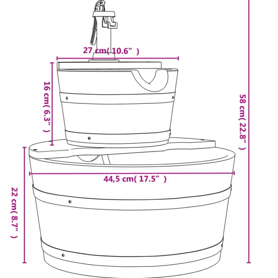 Cette fontaine à eau en bois est un excellent supplément à votre arrière-cour, patio et jardin, faisant de votre maison un paysage unique. Bois de sapin massif : le bois de sapin massif est un matériau naturel magnifique. Le bois de sapin ne se dessèche pas et ne se déforme pas lorsqu’il est exposé à l’humidité.Pompe électrique pratique : la pompe à eau intégrée renvoie l’eau descendante pour former une circulation d’eau efficace, de sorte que vous n’avez pas à remplir manuellement la nouvelle eau. Vous pouvez également régler la force du débit d’eau à l’aide de l’interrupteur de la pompe.Fonction décorative : l’eau qui coule donne un environnement optique et acoustique joyeux, ce qui crée une ambiance rustique et élégante pour votre jardin. De plus, la fontaine en cascade invitera les petits animaux comme les oiseaux et les écureuils à visiter votre jardin.Cadre robuste et stable : le cadre en bois de la fontaine de jardin assure robustesse et stabilité. Bon à savoir :Pour faciliter au maximum le montage, chaque produit est livré avec des instructions.