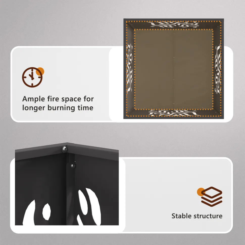 Ce foyer carré à bois combine style et praticité, il est super pour les rencontres en extérieur. Son look industriel s’harmonise bien avec toute déco de jardin ou de patio, créant un espace chaleureux où amis et famille peuvent profiter du feu. Construction Durable: Fabriqué en acier inoxydable de qualité pour durer longtemps. Résistance à la Chaleur: Fait pour supporter la chaleur du bois, vous gardant bien au chaud les fraîches soirées. Résistance à la Rouille: Matériaux résistants à la rouille pour une utilisation extérieure en toute saison. Conception Portable: Léger pour faciliter le déplacement, ajoutant une flexibilité à votre extérieur. Esthétique Stylée: Sa forme carrée et sa finition mate apportent un style tendance à votre espace extérieur.