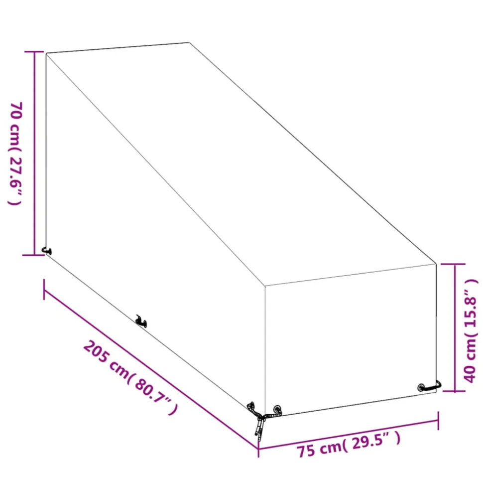 La housse de chaise longue résistante à l’eau et aux UV est idéale pour protéger votre mobilier d’extérieur de la pluie, du soleil et de la poussière. Matériau durable : le polyéthylène (PE) est le matériau plastique le plus utilisé. Il est pratique car il est résistant aux UV, léger et facile à entretenir. Fabriquée en polyéthylène, la housse pour meubles convient à un usage quotidien.Conception pratique : la housse pour meubles de jardin est munie d’艙illets en aluminium et d’une corde pour faciliter la fixation.Rangement pratique : lorsque vous n’utilisez pas cette housse de meubles d’extérieur, vous pouvez la plier à la taille souhaitée et la ranger facilement dans le meuble de rangement.