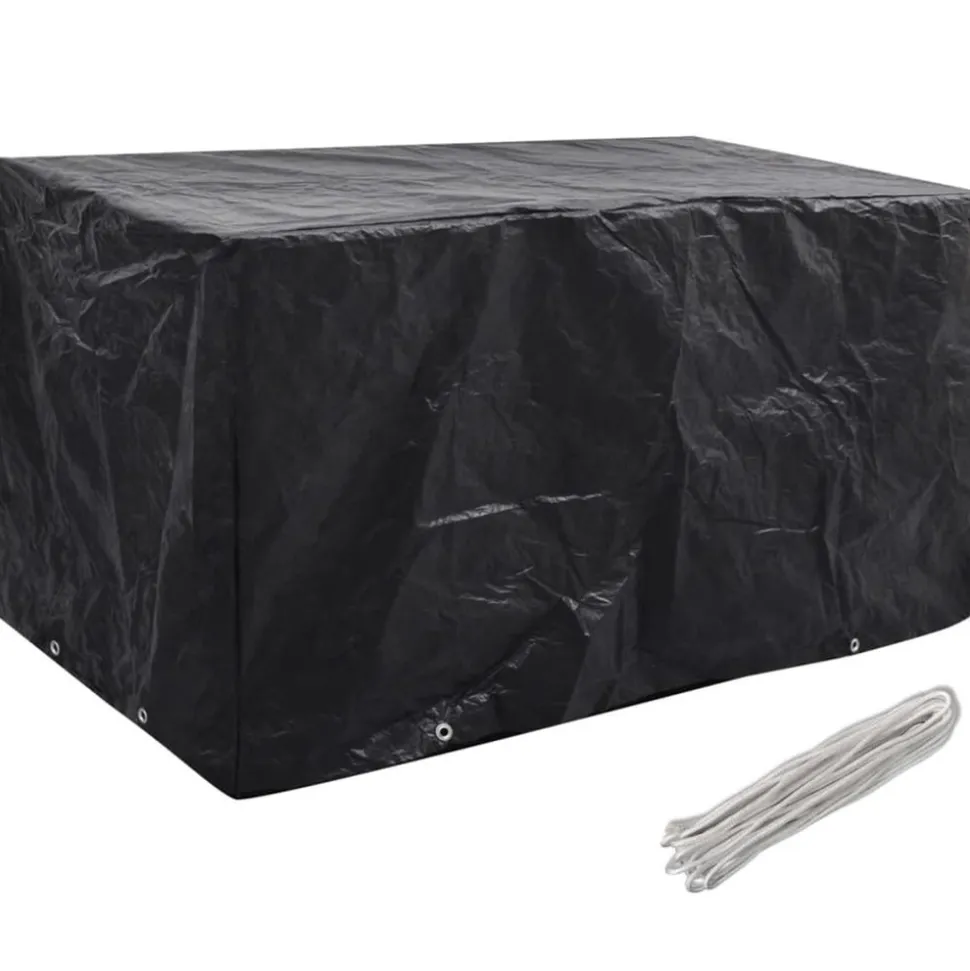 Cette housse de mobilier de jardin de haute qualité convient à la protection de votre mobilier en rotin contre la poussière, le vent, la pluie et les rayons UV toute l’année. Elle peut également être utilisée pour protéger des bancs ou des tables dans le jardin. La housse est faite de polyéthylène durable, qui est résistante à l’eau, aux UV et à la déchirure et donc adaptée à un usage quotidien. Elle a 8 艙illets en aluminium et une corde de fixation, donc elle s’adaptera mieux à votre meuble. Remarque : ce produit n’est pas 100 % étanche. Ainsi, nous vous recommandons de le traiter avec un spray imperméabilisant pour une meilleure fonction d’imperméabilité.