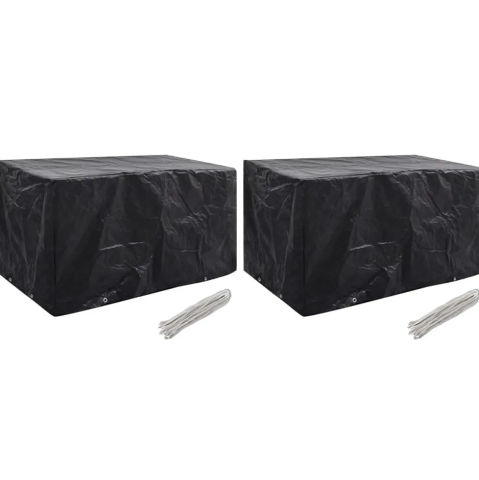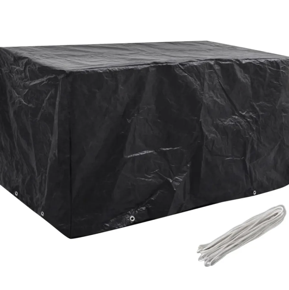 Cette housse de mobilier de jardin de haute qualité convient à la protection de votre mobilier en rotin contre la poussière, le vent, la pluie et les rayons UV toute l’année. Elle peut également être utilisée pour protéger des bancs ou des tables dans le jardin. La housse est faite de polyéthylène durable, qui est imperméable à l’eau, résistante aux UV, indéchirable et donc adaptée à un usage quotidien. Elle a 8 艙illets en aluminium et une corde de fixation, donc elle s’adaptera mieux à votre meuble. La livraison comprend 2 housses de salon de jardin. Remarque : ce produit n’est pas 100 % étanche. Ainsi, nous vous recommandons de le traiter avec un spray imperméabilisant pour une meilleure fonction d’imperméabilité.