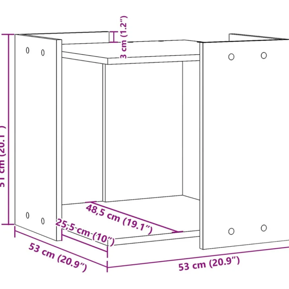 - Dimensions intérieures : 48,5 x 48,5 x 42 cm (l x P x H)