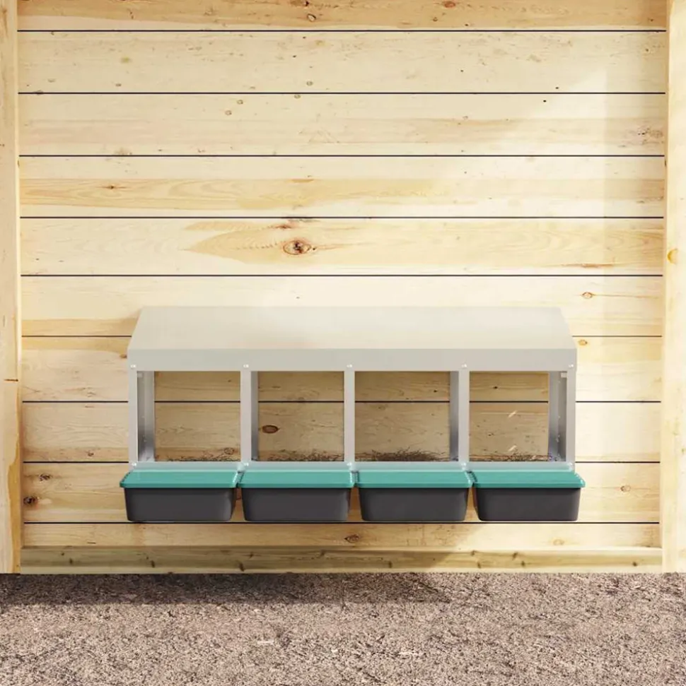Améliorez votre expérience d’élevage de volailles avec le nichoir à poulets, offrant aux poules un espace de ponte privé et confortable. Matériau robuste et durable : Fabriqué en acier galvanisé et en plastique polypropylène robuste, ce nichoir est conçu pour durer, offrant des performances durables et une protection à vos poules contre les conditions extérieures difficiles.Collecte des œufs pratique : Le couvercle facile à soulever et la conception déroulante permettent une collecte des œufs sans effort tout en gardant les poules tranquilles. Sa conception bien pensée favorise un environnement calme pour votre troupeau, rendant la collecte des œufs fluide, sans tracas et facile à entretenir.Conception peu encombrante : la structure murale de ce pondoir à poules permet d’optimiser l’espace dans votre poulailler, permettant à vos poules de se déplacer plus facilement tout en leur offrant un endroit confortable et sécurisé pour pondre leurs œufs.Ventilation bien pensée : le pondoir est conçu avec des bouches d’aération et une façade ouverte pour assurer une circulation d’air optimale, maintenant un environnement sec, sans odeur et confortable pour vos poules tout en empêchant l’accumulation d’humidité et d’odeurs.Facile à installer : le pondoir est facile à installer, car il comprend tous les accessoires d’installation nécessaires. Il peut être monté sur des surfaces telles que des murs en béton, des murs en briques et des plaques de plâtre. Suivez les instructions fournies pour un processus d’installation simple. Bon à savoir :Pour éviter les rayures, il est recommandé de porter des gants lors de l’installation.