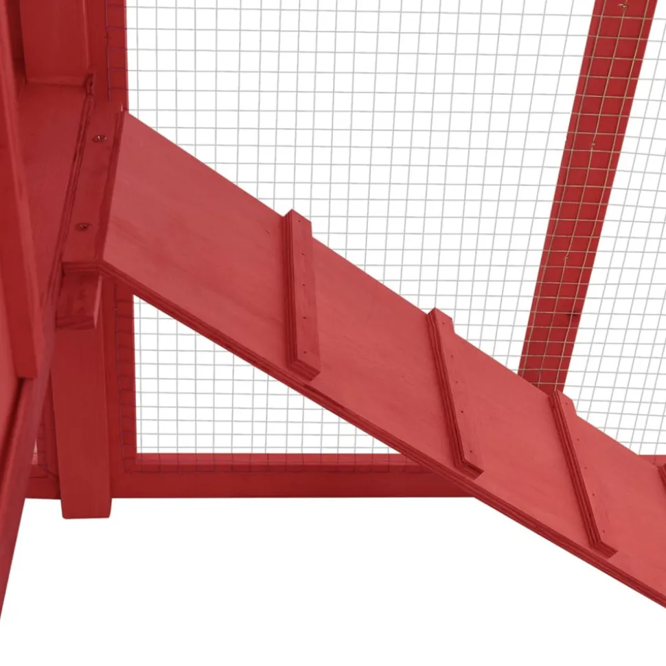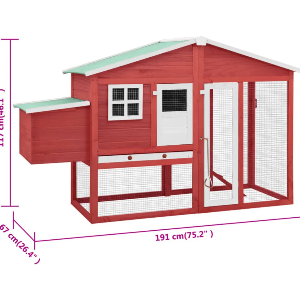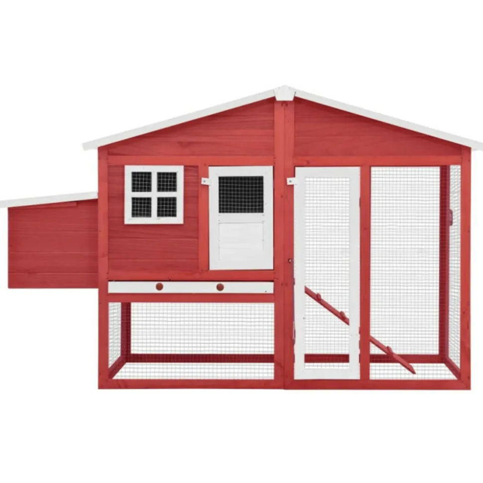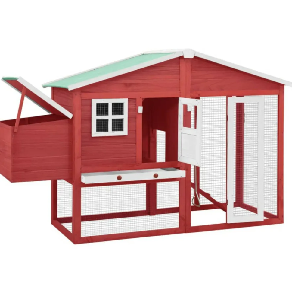 Ce poulailler en bois offre un endroit confortable pour l’élevage des petits animaux, en particulier les poulets pour se détendre. La cage à poulet dispose d’un design complet avec une maison, un nichoir et une très grande piste avec grillage en acier galvanisé pour garder un œil sur votre volaille. Elle assure également votre surveillance des poulets et leur permet d’obtenir assez d’air frais. Le poulailler est construit en bois de sapin massif, ce qui le rend durable. De plus, le toit inclinable est recouvert de tissu résistant à l’eau et empêche la pluie de pénétrer. La cage offre la zone de couchage parfaite. De plus, la rampe antidérapante mène du niveau inférieur au niveau supérieur, et le dessus coulissant facilite le nettoyage. Ce clapier à poules est parfait pour vos animaux de compagnie dans votre cour. Couleur : Rouge et blancMatériau : bois de pin massif, contreplaqué, acier galvaniséDimensions totales : 191 x 67 x 117 cm (l x P x H)Dimensions intérieures (sans nichoir) : 144 x 57 x 115 cm (l x P x H)Poids net : 24,7 kgToit recouvert d’un tissu résistant à l’eau (100 % polyester)Avec une rampe antidérapante pour faciliter l’accès au niveau supérieurUn bac coulissant pour un nettoyage facileConvient aux pouletsL’assemblage est requisCouleur : Rouge et blancMatériau : bois de pin massif, contreplaqué, acier galvaniséDimensions totales : 191 x 67 x 117 cm (l x P x H)Dimensions intérieures (sans nichoir) : 144 x 57 x 115 cm (l x P x H)Poids net : 24,7 kgToit recouvert d’un tissu résistant à l’eau (100 % polyester)Avec une rampe antidérapante pour faciliter l’accès au niveau supérieurUn bac coulissant pour un nettoyage facileConvient aux pouletsL’assemblage est requis
