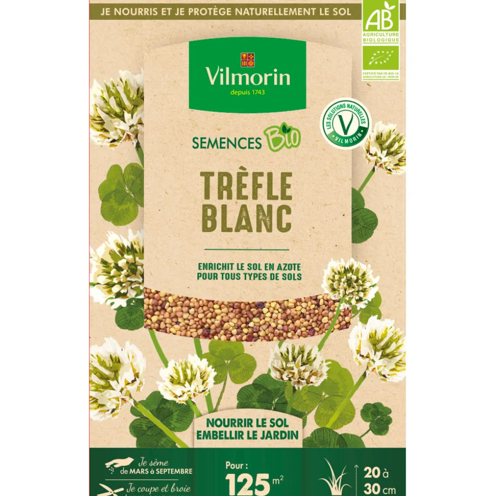 Je nourris et je protège naturellement le sol ! Le Trèfle blanc est une plante très rustique, adaptée à tous les terrains, mêmes pauvres, et à toutes les expositions. Il enrichit les sols en azote, qui est un élément nutritif important pour améliorer la croissance des plantes et le rendement, tout en favorisant le développement des racines. Utilisé entre deux cultures, il favorise le bon développement des cultures suivantes.