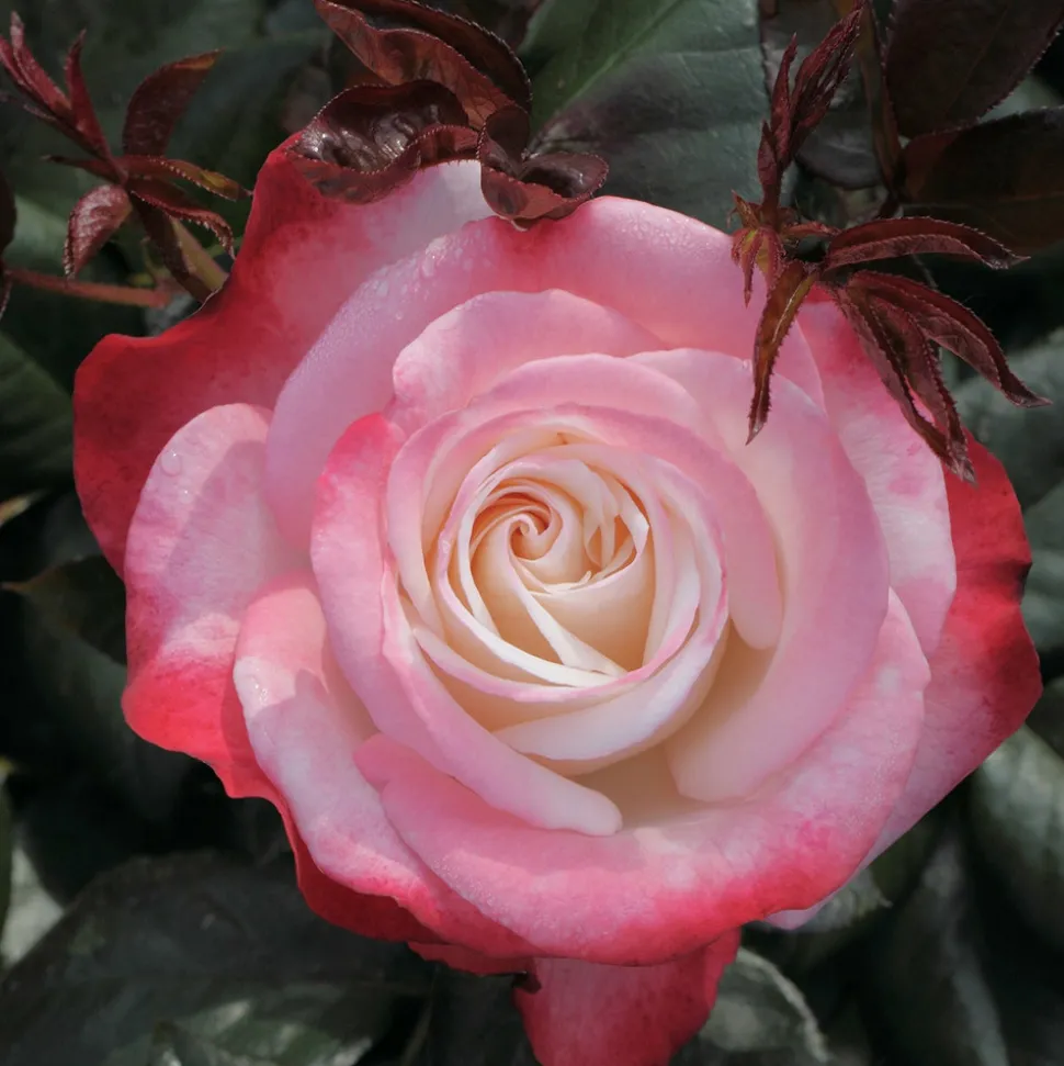 ‘Nostalgie’ est considéré comme l’un des classiques du monde des roses. C’est une rose de jardin légendaire et une superbe rose coupée. Ses fleurs en forme de boule, sa combinaison de couleurs blanc crème et cerise, son parfum, ses feuilles extrêmement brillantes et ses jolies pousses teintées de rouge lui ont valu une popularité mondiale.