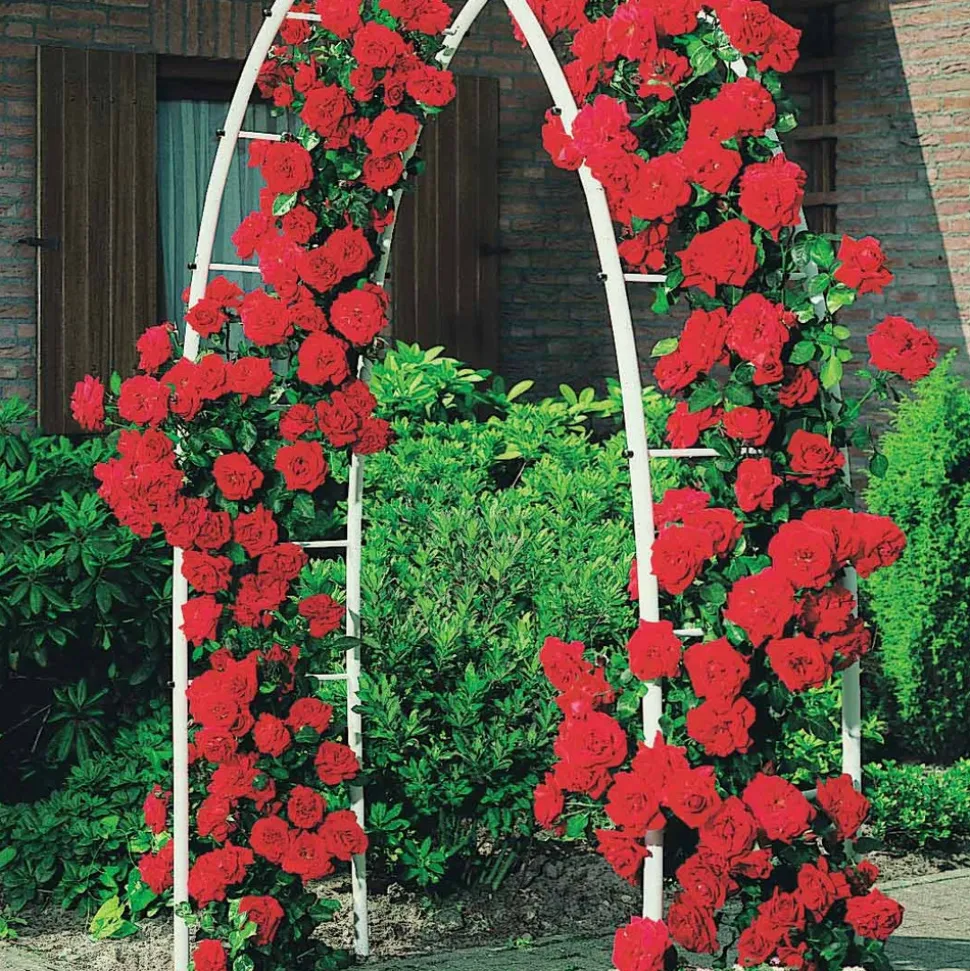 Le rosier grimpant Musimara se marie parfaitement avec une variété d’autres plantes dans le jardin, créant des scènes spectaculaires et diversifiées. Ce rosier peut être associé à des clématites qui, grâce à leurs tiges volubiles et leurs floraisons en cascade, complètent magnifiquement les grappes de fleurs rouges du Musimara.