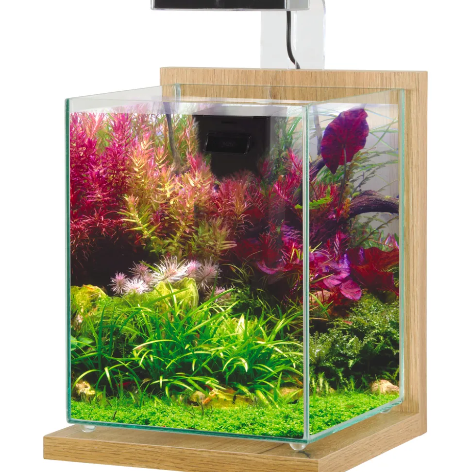 Vous succomberez au charme authentique des aquariums Jalaya. Les aquariums Jalaya sont spécialement conçus pour accueillir au choix, un magnifique combattant du Siam, une colonie de crevettes d’ornement ou un petit groupe de poissons exotiques colorés. Tout est prévu pour que vous leur offriez les meilleures conditions de vie à l’image de celles existant dans leur milieu naturel. Votre aquarium Jalaya reconstituera ainsi un petit biotope naturel dans votre intérieur qui fera l’admiration de vos amis et sensibilisera vos enfants à la préservation de la nature. Installez vous devant votre aquarium Jalaya et profitez du spectacle vivant sans cesse renouvelé de vos poissons ou crevettes batifolant dans leur joli petit écrin de verdure. Aquarium Jalaya 2 Chêne Clair L.23,0P.22,0xH.29,0cm. Equipement fourni avec votre aquarium en verre collé : Un éclairage Led 3 positions : jour/nuit/off, un filtre cascade 30 (170L/H) de nouvelle génération et son support en bois. Volume de la cuve Jalaya 2 dotée de 4 plots silicone : 10l.